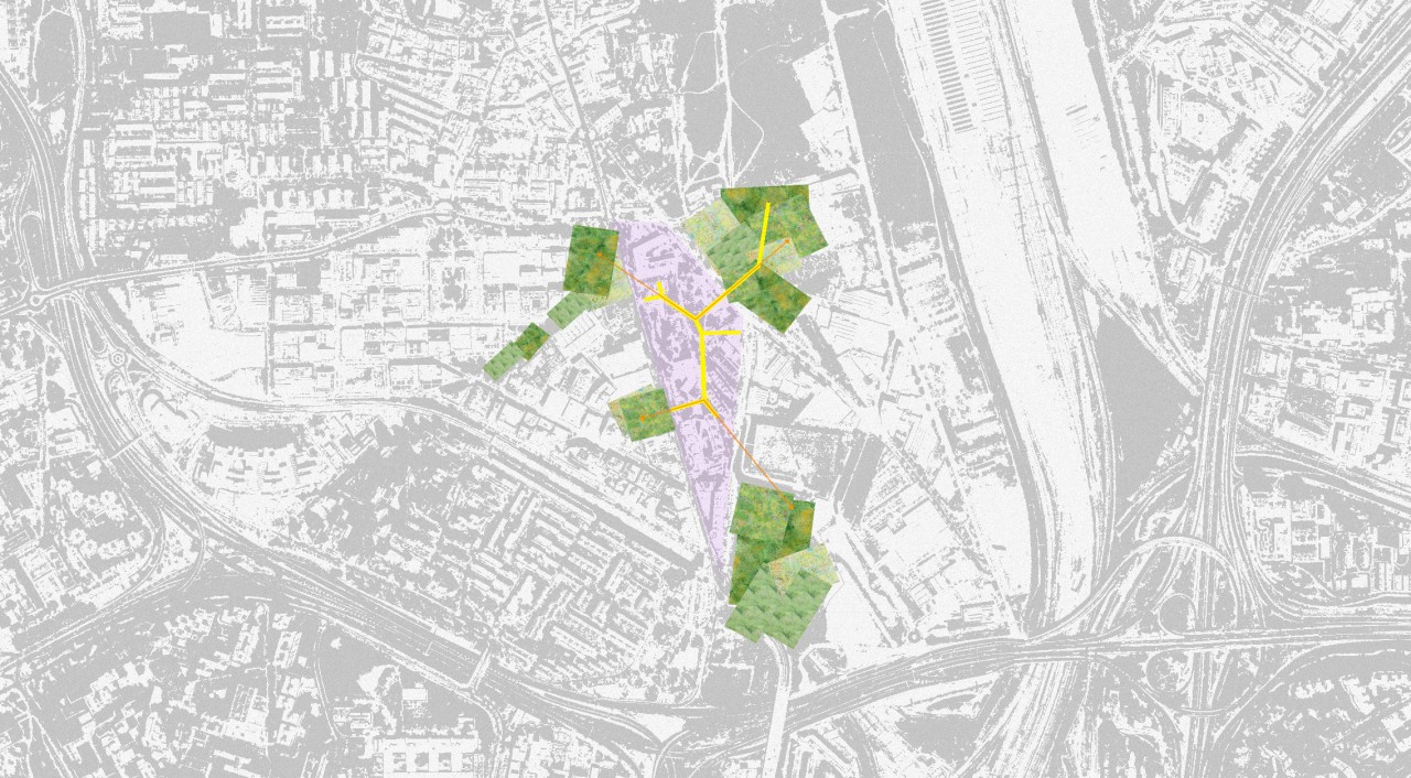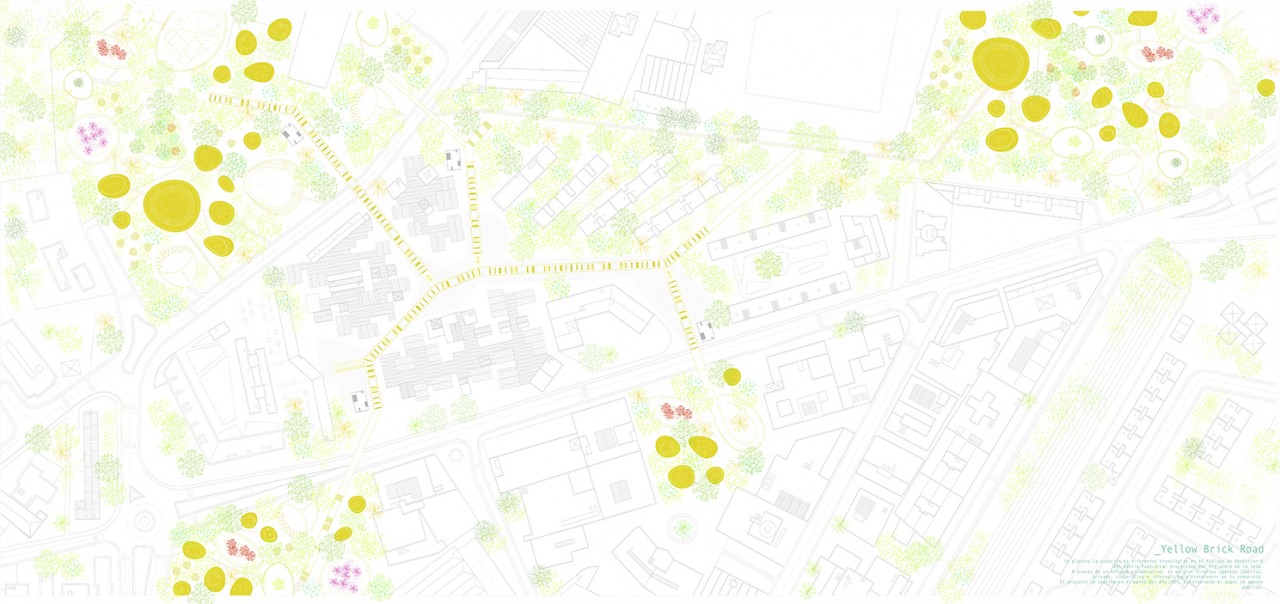 The proposal responds to the context and seeks to provide a solution to this empty island, generating an archipelago in which the pre-existing surrounding green islands are linked to the space to be intervened through a unitary piece, creating a productive system as a whole.