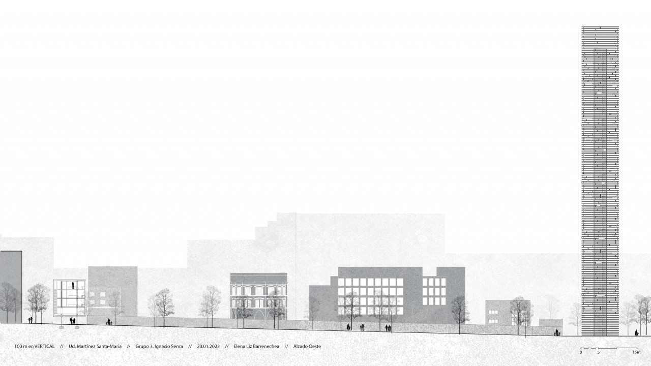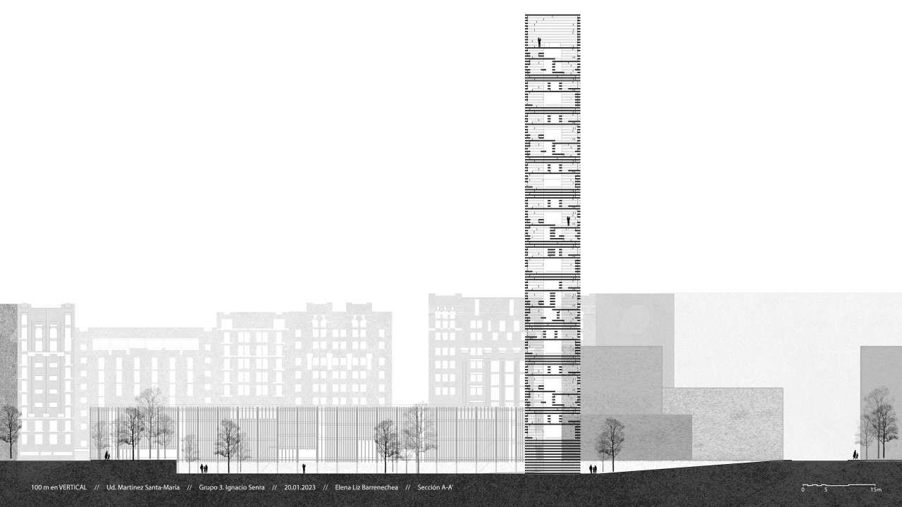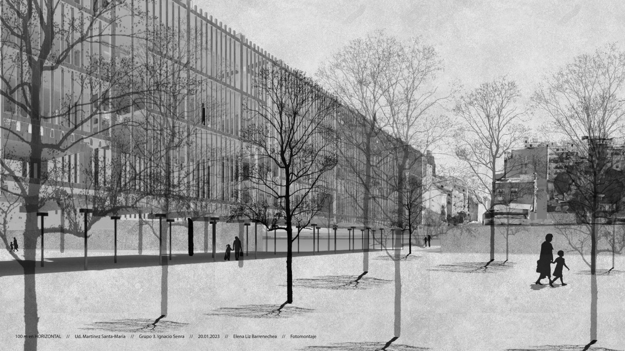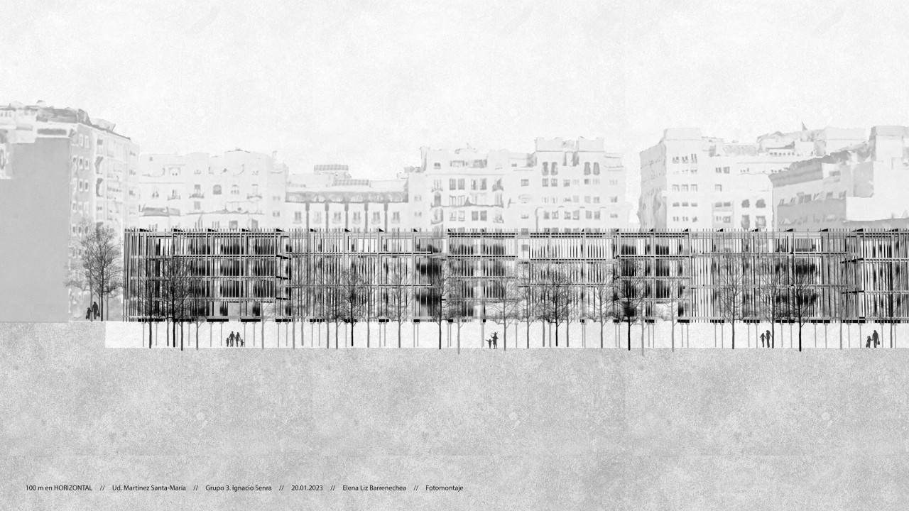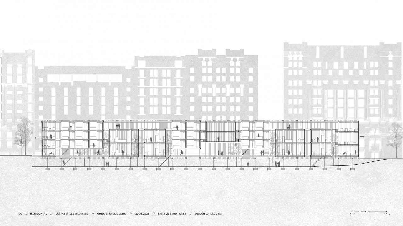 Both exercises are intended for residential use. Specifically, the horizontal uses minimum housing modules, where we find student apartments that share common areas, and complete homes of 1 or two bedrooms. In addition, the building is passable from one side to the other and includes different open and closed common spaces, accessible to all users.
