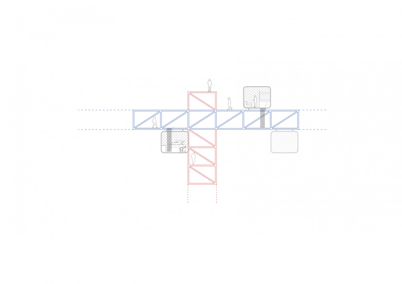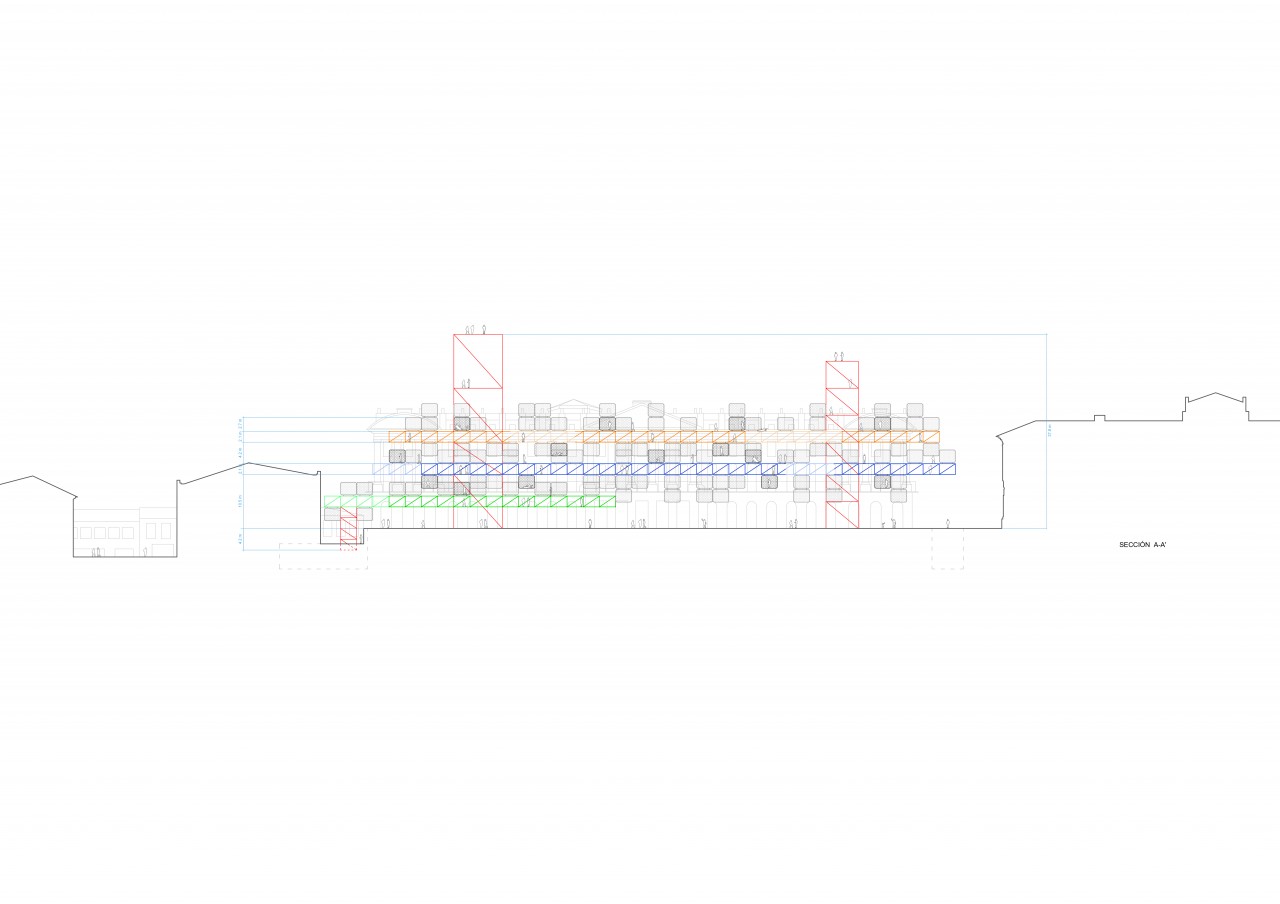 The second project is a temporary and ephemeral scaffolding infrastructure that allows pilgrims to parasitize the city of Santiago de Compostela on dates of great influx. In addition to serving as accommodation, it creates an urban and social space for community use.