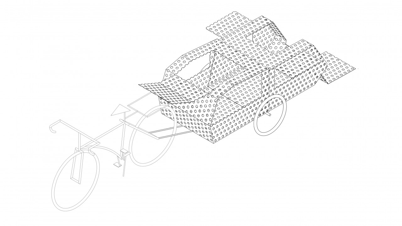 The first project is about a light cell with minimal dimensions, to be towed by a bicycle. With this, pilgrims are allowed complete autonomy, both in terms of mobility and accommodation.