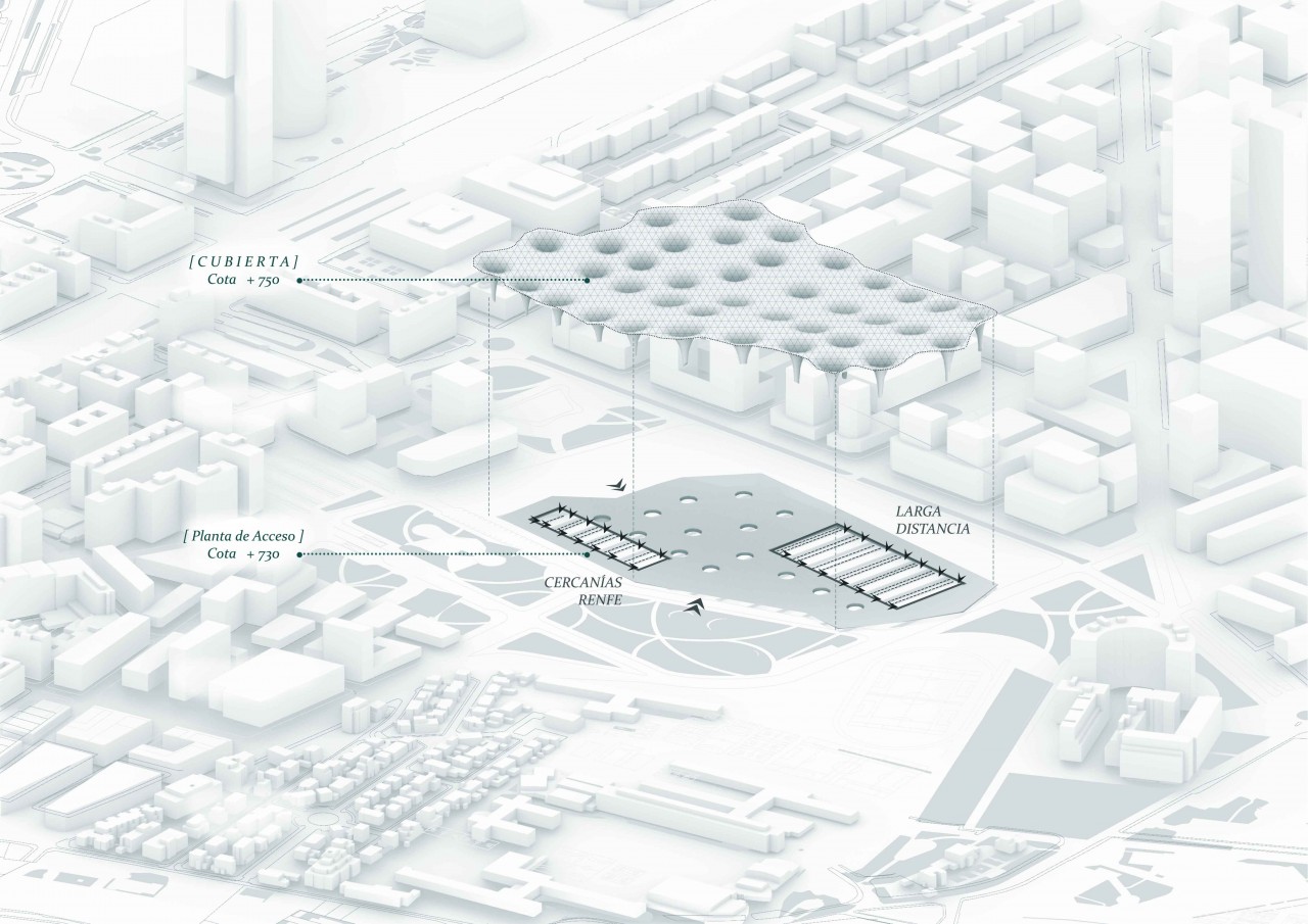 The proposed new station aims to be located in the city as an important milestone because it is the gateway of so many tourists, businesses, passengers, citizens and inhabitants of the world. It is intended to revalue the geometry more characteristic of the old Chamartín, as were the vaults, trying to enhance its meaning and giving it much more presence than they once had. That's why we think of a high-tech architecture