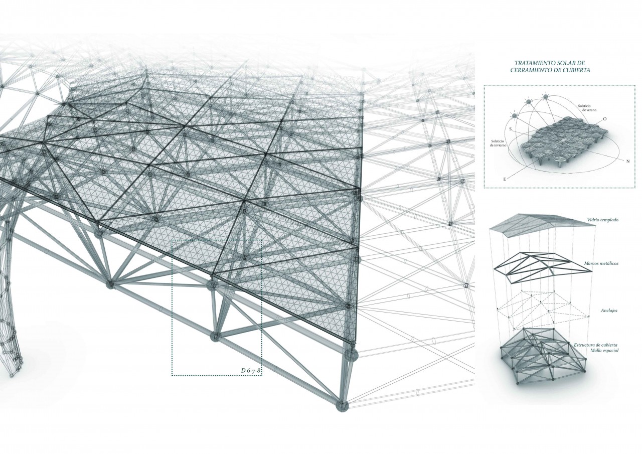 generated by a spatial mesh with double curvatures that cover the space of the station and enhance the attractiveness of its geometry inside the station. A new station that dazzles visitors to Madrid when land at the Adolfo Suárez-Madrid Barajas Airport and arrive at the Chamartín station through the line direct suburban train.
