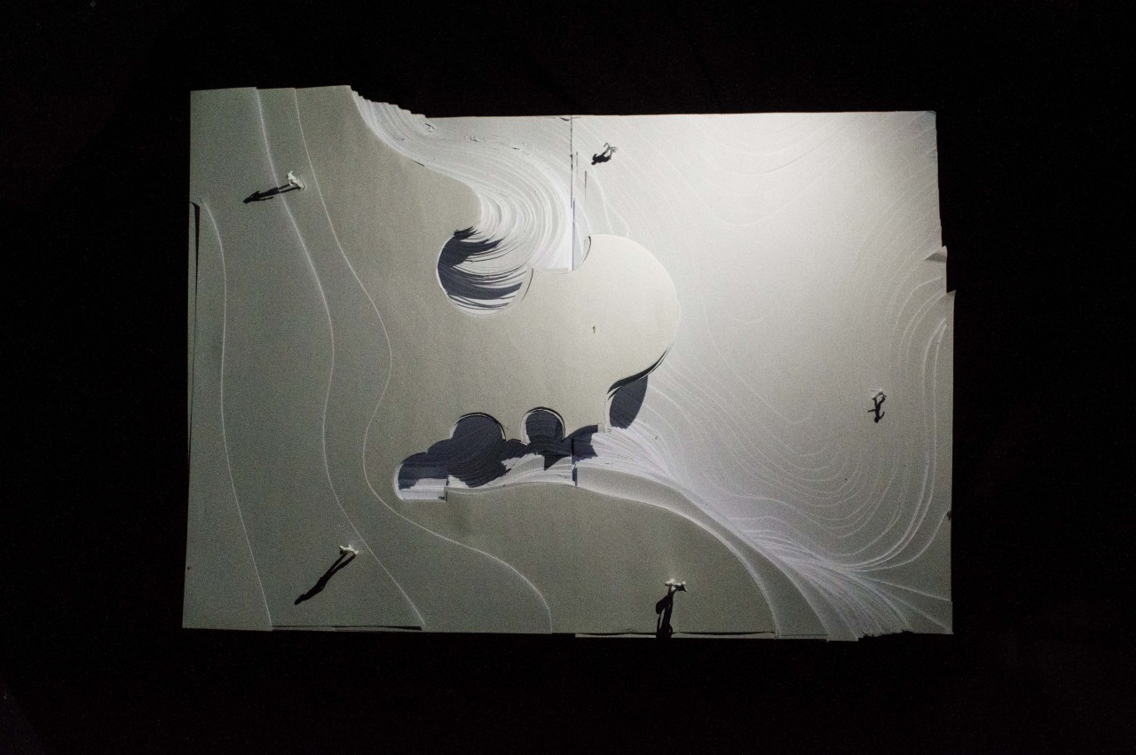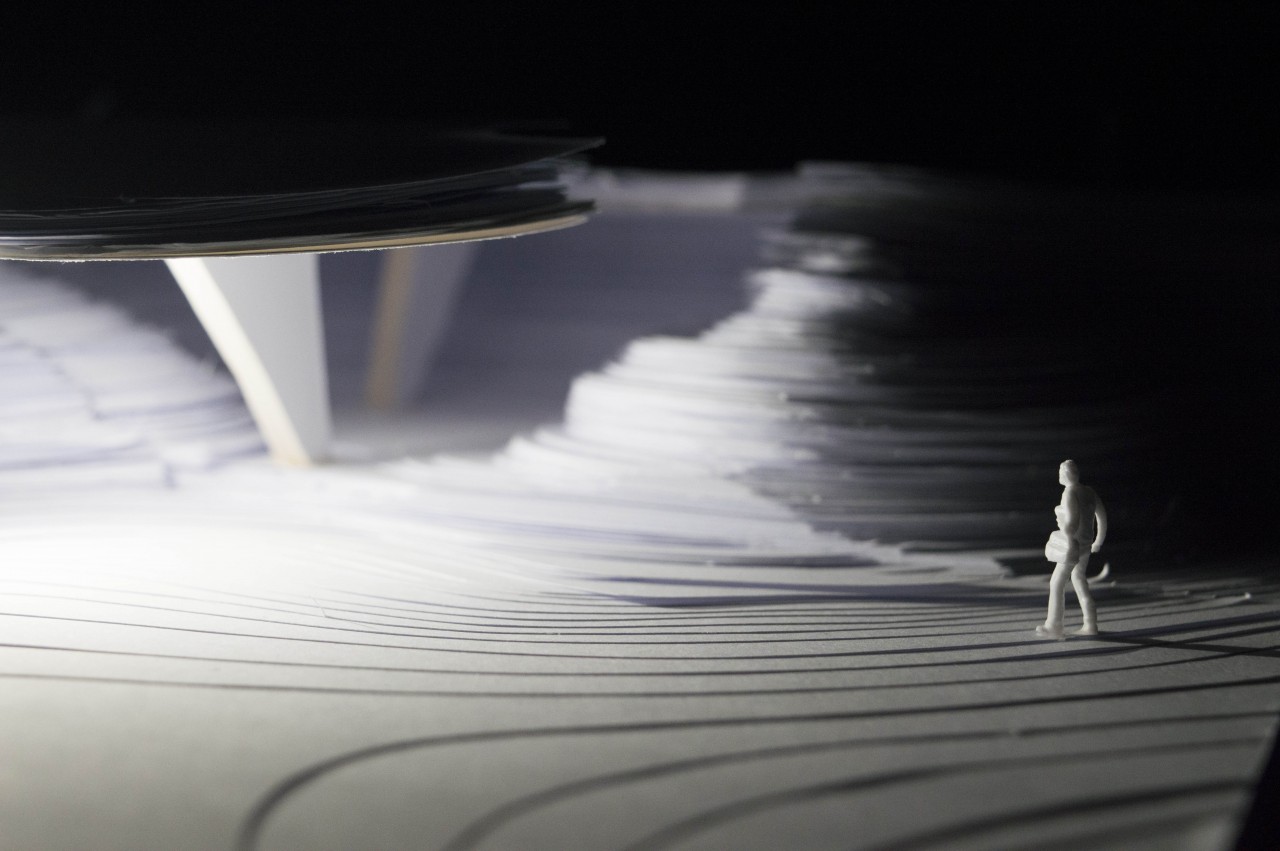 It is a pavilion in the Gulbenkian Foundation (Lisboa) which extends the field landscape adobe the lake producing an amazing views of the park as well as a empty and cool space below perfect in order to spend time there doing different activities.
