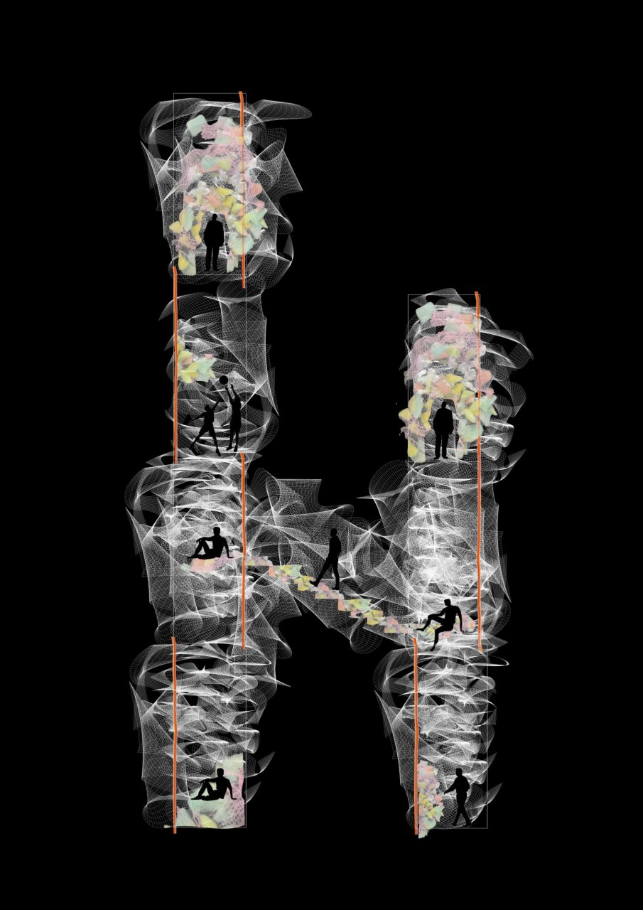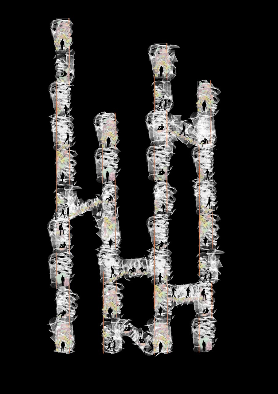 Eco-Towers are 5 interconnected towers built from the simple vertical repetition of one of the Habi-friendly modules.