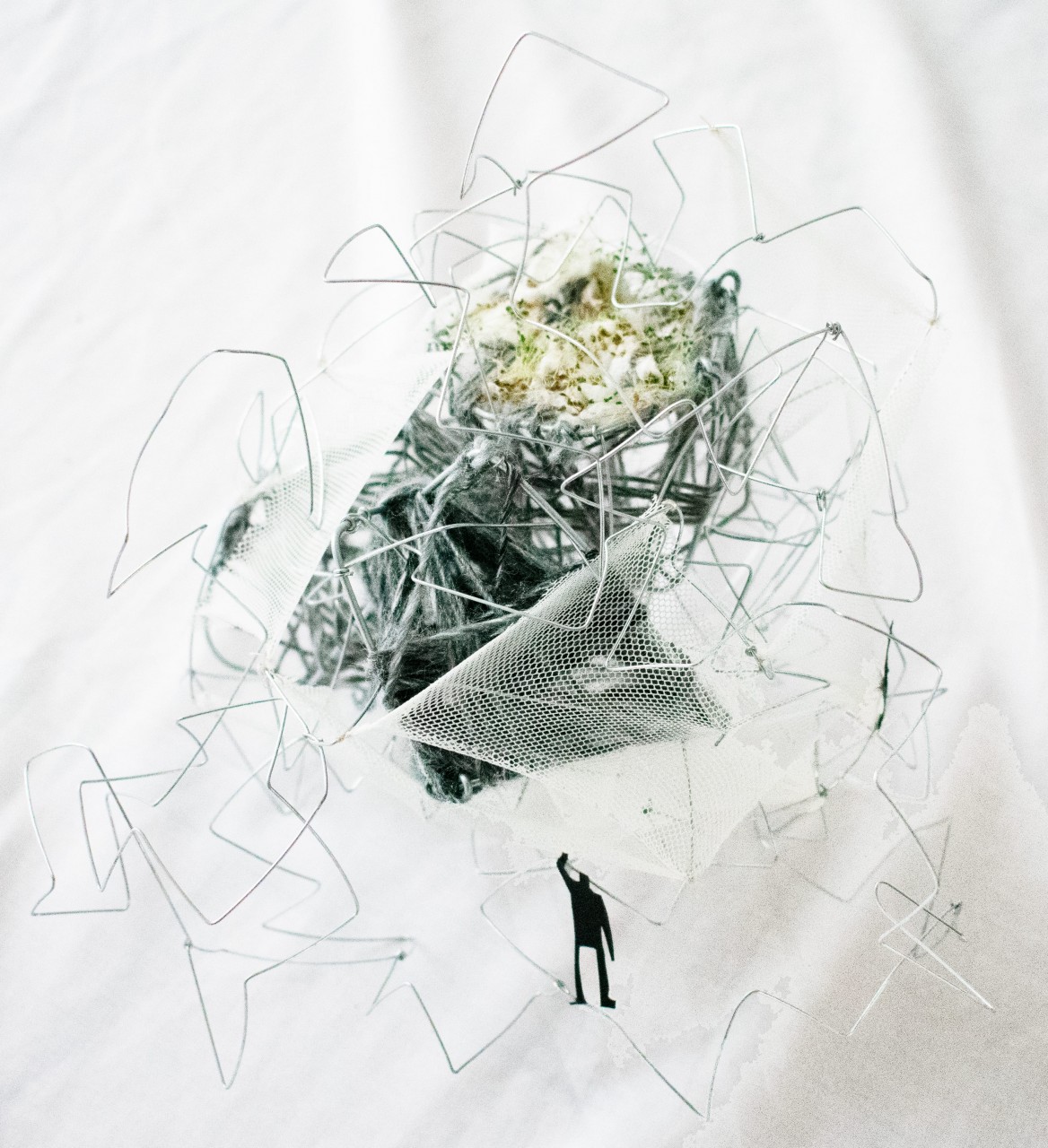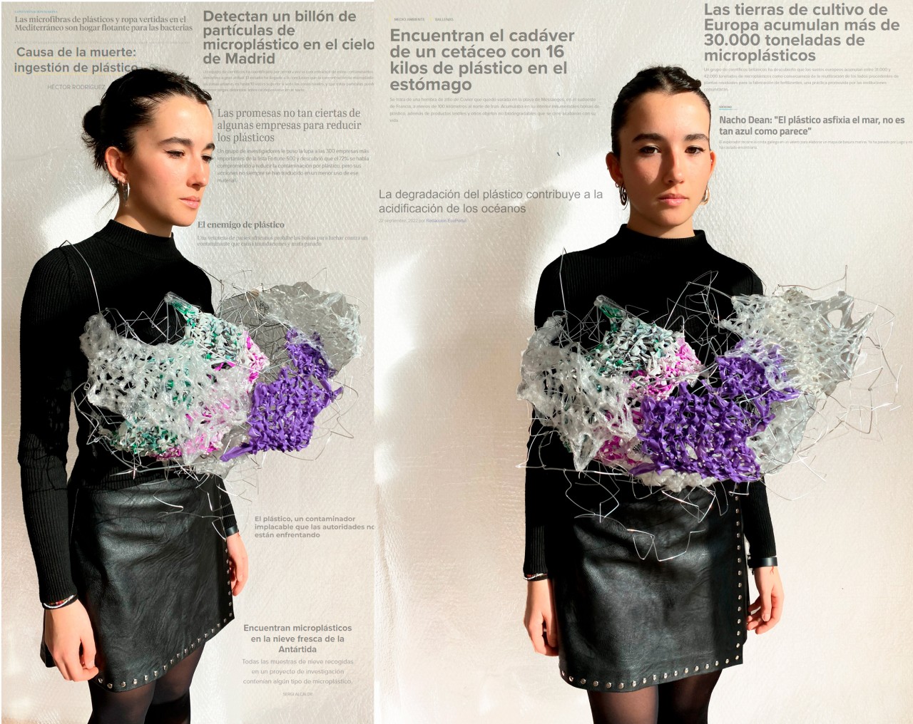 The last layer of my project leaves behind the design of a living space, at the end of the course I decided to commit myself to the alarming environmental situation. The construction sector is one of the most polluting and producers of plastic, so I decided to make a dress made with recycled plastic crochet as a protest against the excessive consumption of this material.