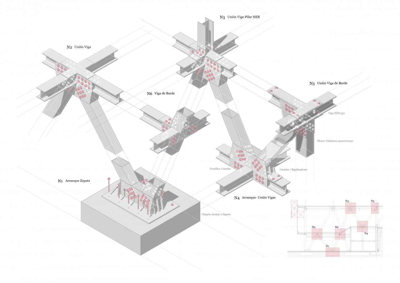 With the aim of contrasting with the quarry, its structure is metallic and light,