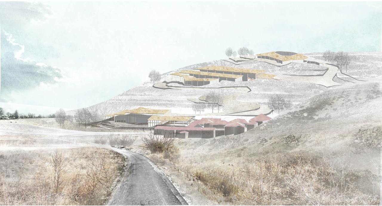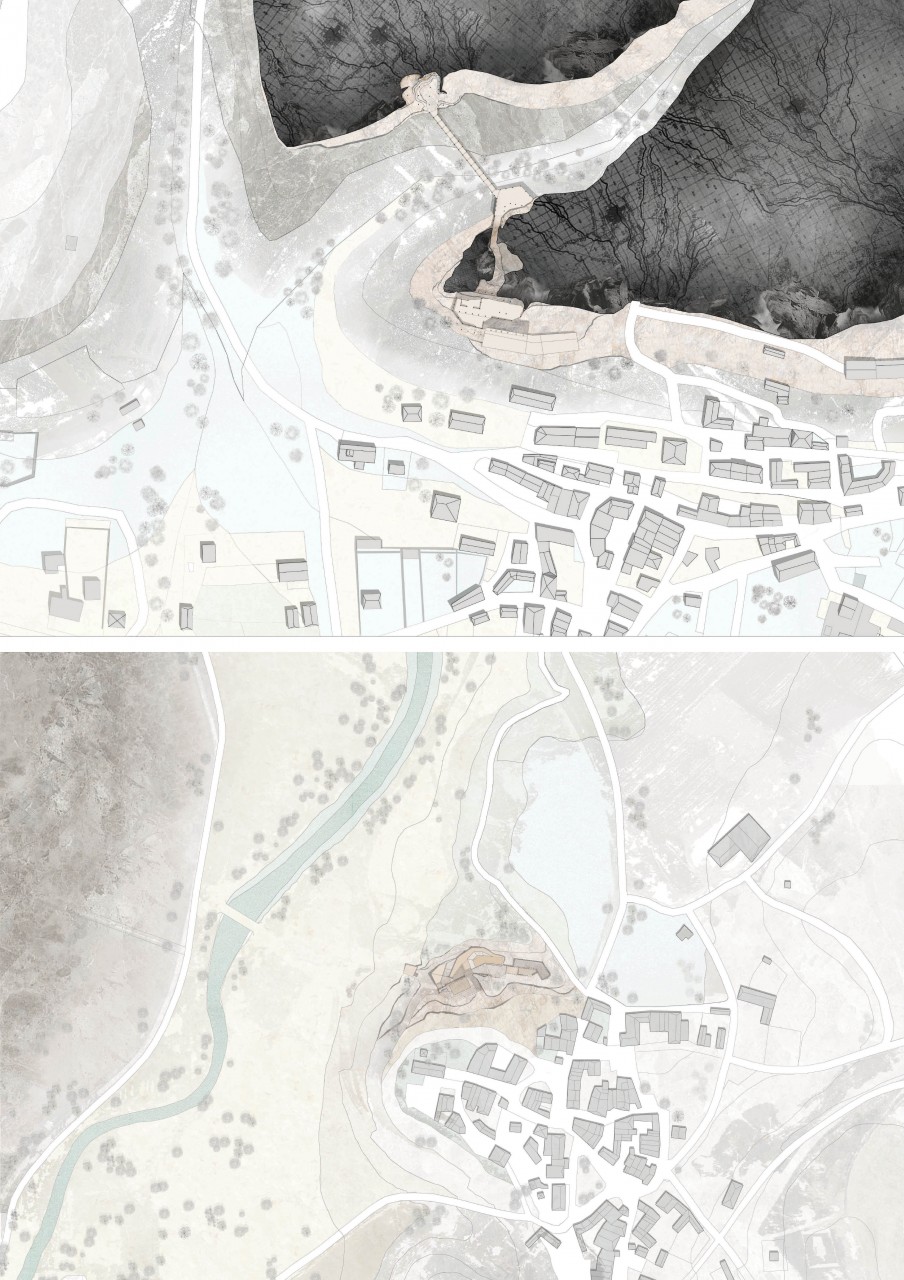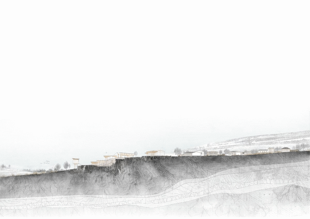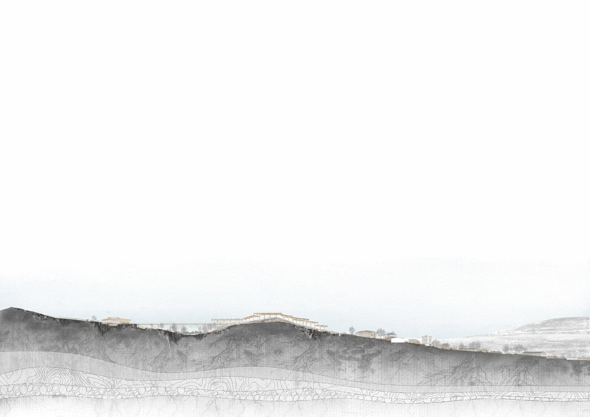 Rural Spain is becoming vacant. The project strives to harness the Architectural potential in nature and its spatial qualities for the revitalization of the surroundings, and to create a mutually positive and well-balanced relationship between the built and the natural environment, while addressing a foundational question about the dualism between the preservation of nature and the intervention in it. The project's interventions take place alongside three villages surrounding an intersection between Rio Riaza and Rio Riaguas, and are made of three sub-systems, which together emphasis the valley’s borders and function as a space. Each of the systems contains functions and spatial qualities according to its location and embodies a different part of the gradient between the built and the unscathed. The interventions in the most human-intensive parts create public and commercial spaces for the villages. Further away, the geological and the wildlife centers are there for those willing to learn, firsthand, about the natural surroundings, geology and history - be it locals or visitors, either before they set foot to roam it, or as they continue to dwell in it. The furthest extensions, the ones created in the most natural areas, may serve the locals as places for meeting and gathering, as places to unite with nature, while on set occasions serve as landmarks for tourists – built areas from which they can observe the stars and wildlife.