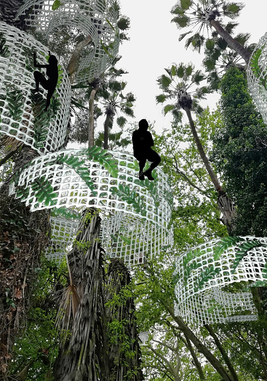 Circular hanging platforms allow you to see the Botanical Garden of Lisbon from a new perspective. Attached to the palm trees and partly ocuppied by the vegetation of the garden, the platforms invite you to climb along their walls until you reach the highest point where you will be able to appreciate the different types of plants, the views and the city of Lisbon.