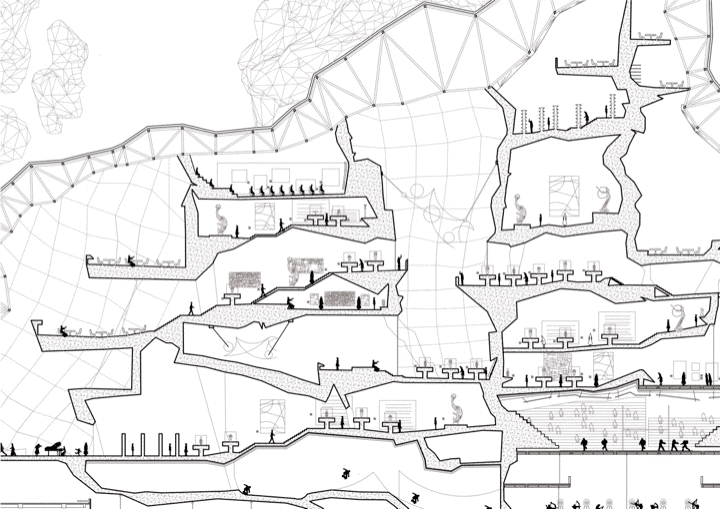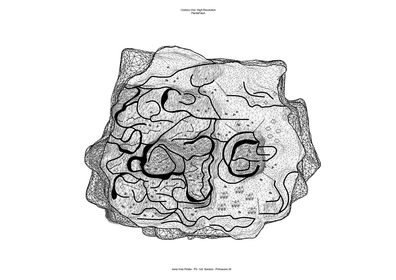A precise reading together with a clear interpretation was essential to obtain a section and an architectural plant of the generated model. The creation of spaces has been key through the interpretation of the mesh, drawing and redrawing the possibilities of organization of space. Finally reaching an appropriate degree of information where those initial ideas that we want to count are embodied, but now in a more precise way.