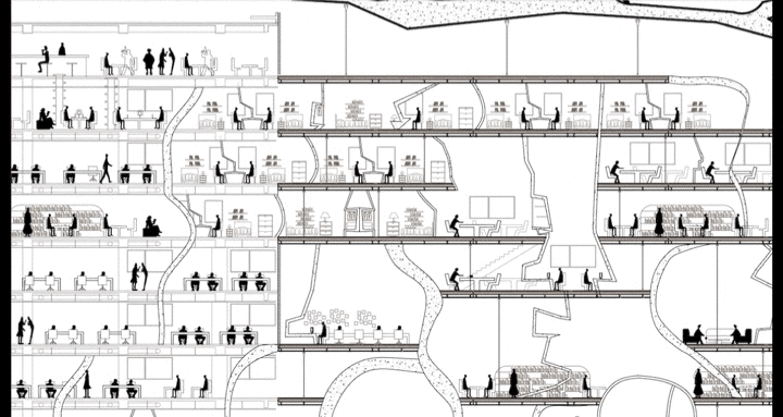 As use, we established a sports complex and cultural center to enrich the office area of Catalinas Norte. We established three constructive and structural families, a structural skin of metal trusses, concrete as a bearing structure and horizontal framings.