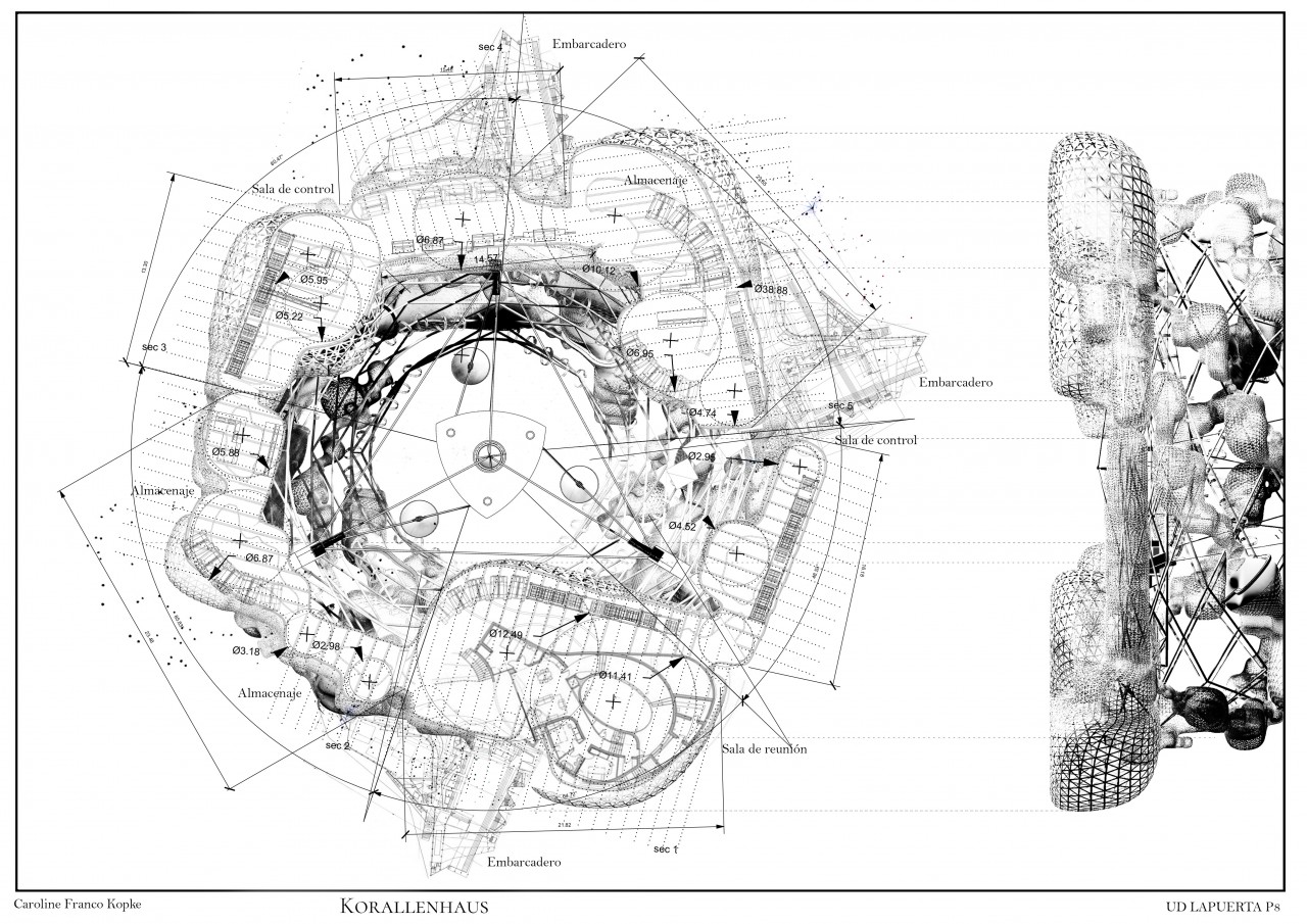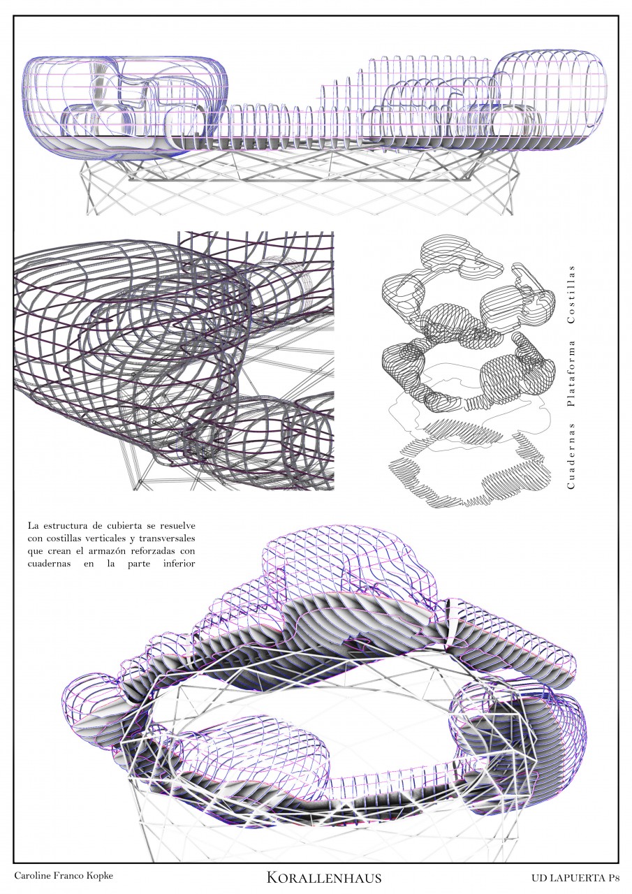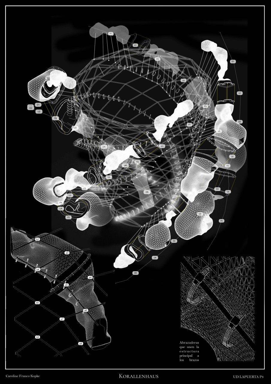 Korallenhaus is a project that aims to establish a link between architecture and nature so that one works for the benefit of the other. Therefore, the project is a device that helps in the restoration of the seabed of the Mediterranean Sea, as they have been devastated by trawling and pollution. In the organic structure, the coral cuttings are tied to control their growth until they are large enough to take them to the seabed.