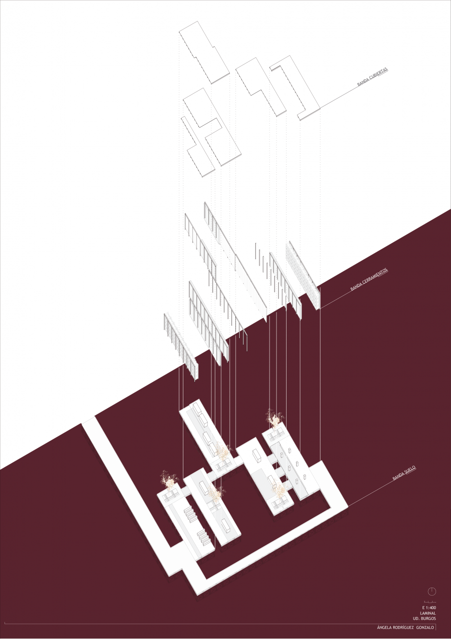 Thus, these bands are parallel and perpendicular to facades, and contain the program.