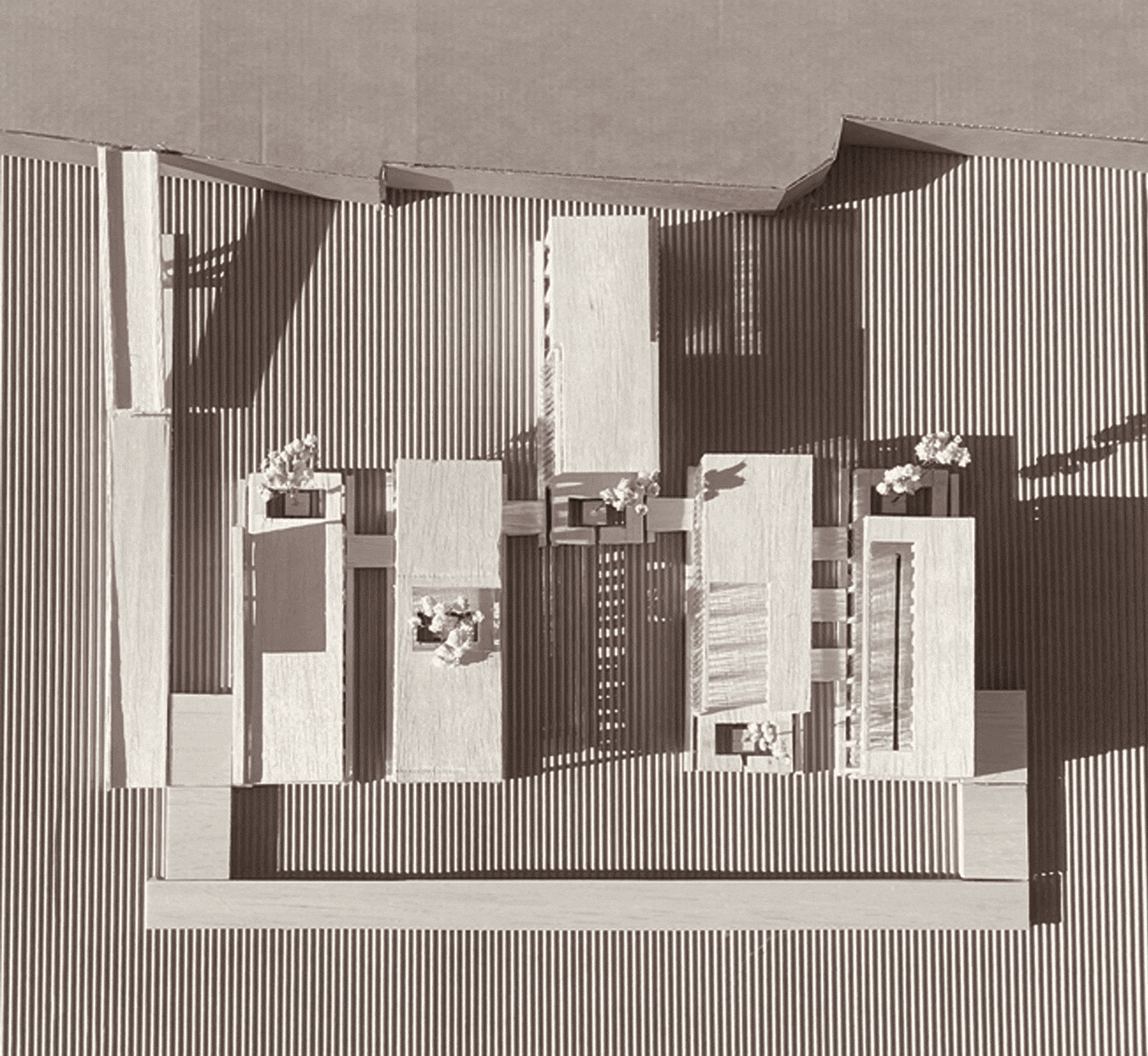 The north building locates a passage, which separated the facade from the private rooms, rooms, commun spaces, and communicating spaces. The private rooms include a desk which lengthens into the corridor as a pot in order to contain vegetation.