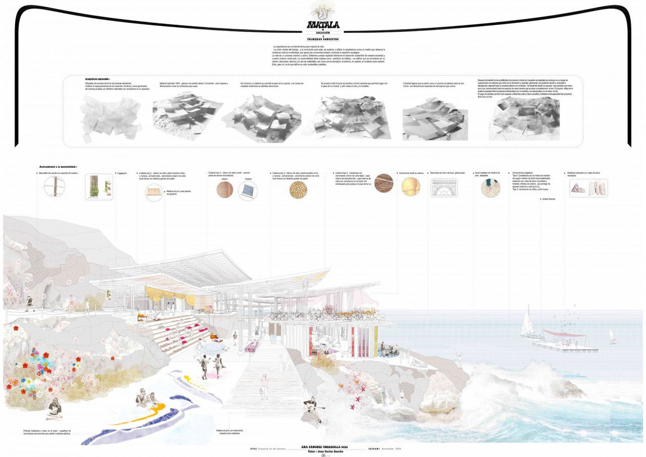 The project proposes the revitalization of Mátala from what it was and the ideals through which its habitability was produced in the 60s, by the hippie society. Nomads who lived, with the utmost respect, the natural environment, merging with it and converting all people and their habitat into a whole.