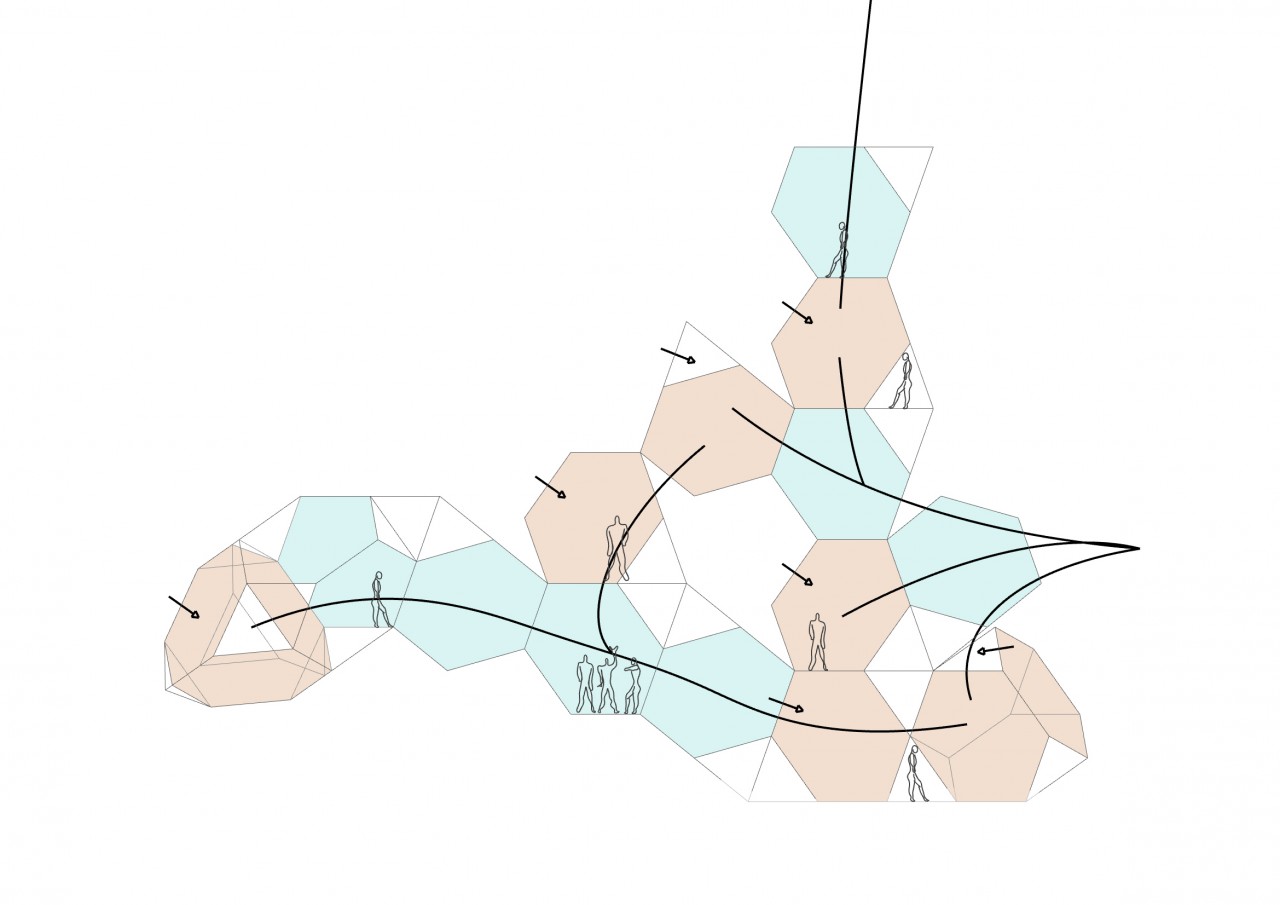 The project is based on the seemingly impossible, but genuinely indissoluble fusion between nature and the artificial. Following the evolutionary process from the cell (or individual module) to the organism by the union of cells, and not stopping here, to the symbiosis with the environment in a round trip relationship, in which one grows in another, and only another expands into one.