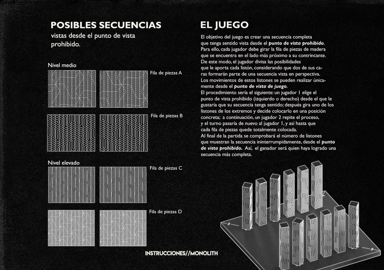 MONOLITH is a game based on anamorfism where players can creat an image which only makes sense viewed from a concrete point. However, players play the game using another point of view.