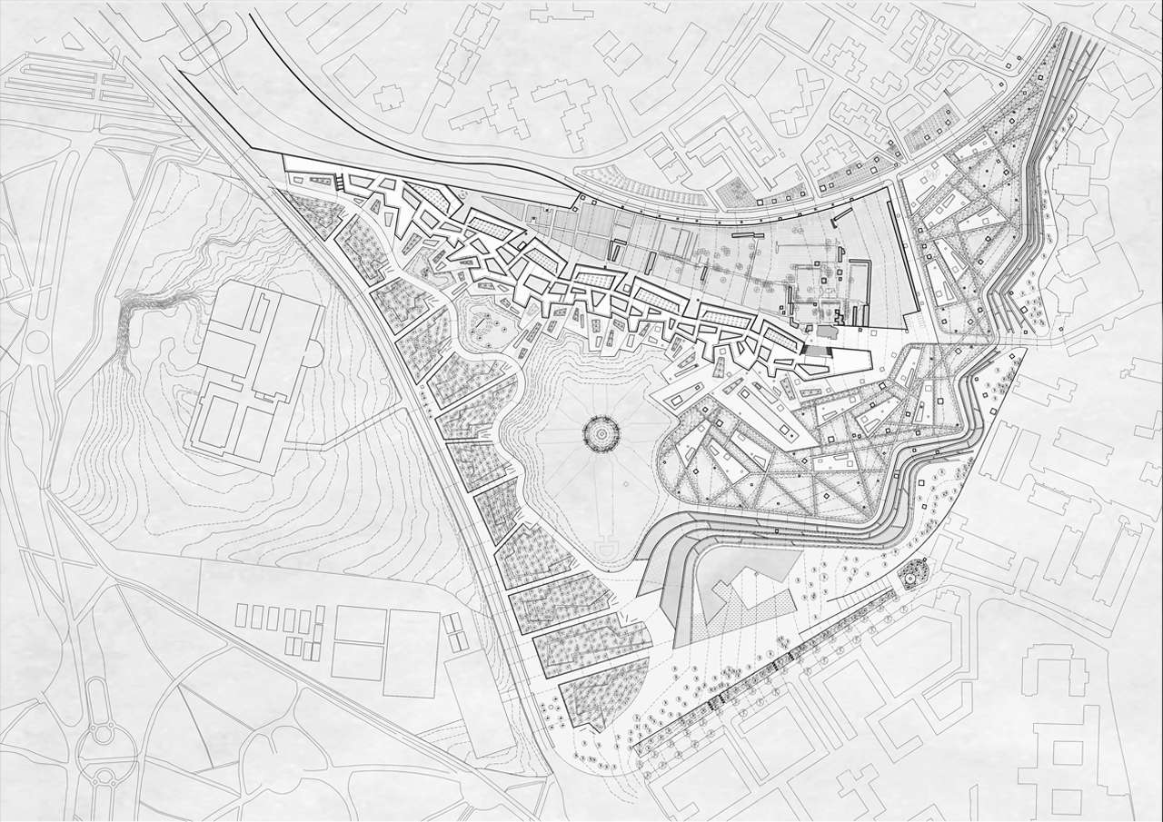 A public park is developed in the district of Carabanchel, Madrid. A number of old monuments are selected, taken from the city and relocated in this natural environment, where they join other pieces of memory already present in the plot, like fragments of the old prison of Carabanchel or a church from the 13th century.