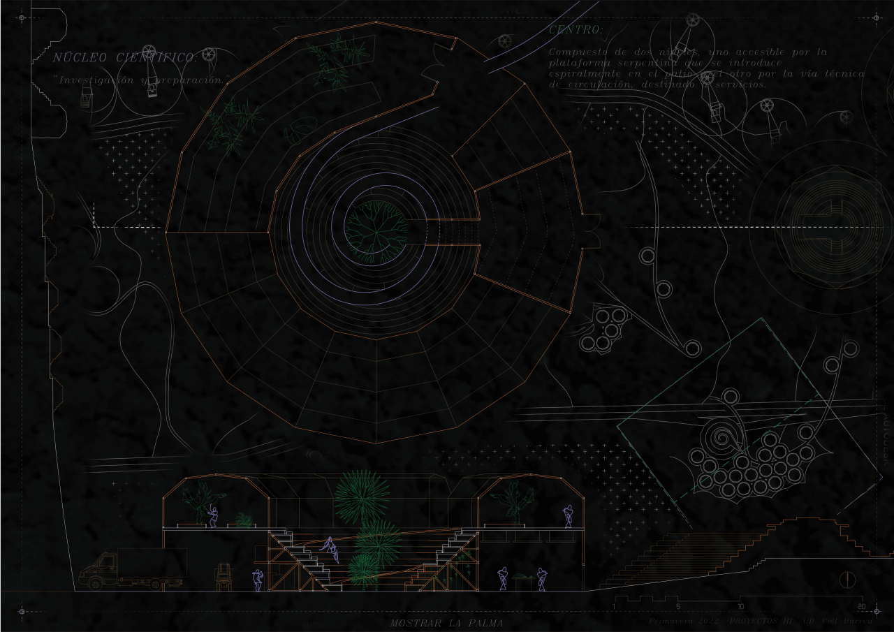 These two fronts are connected with a platform that weaves the technical circulation path and the lava limit.