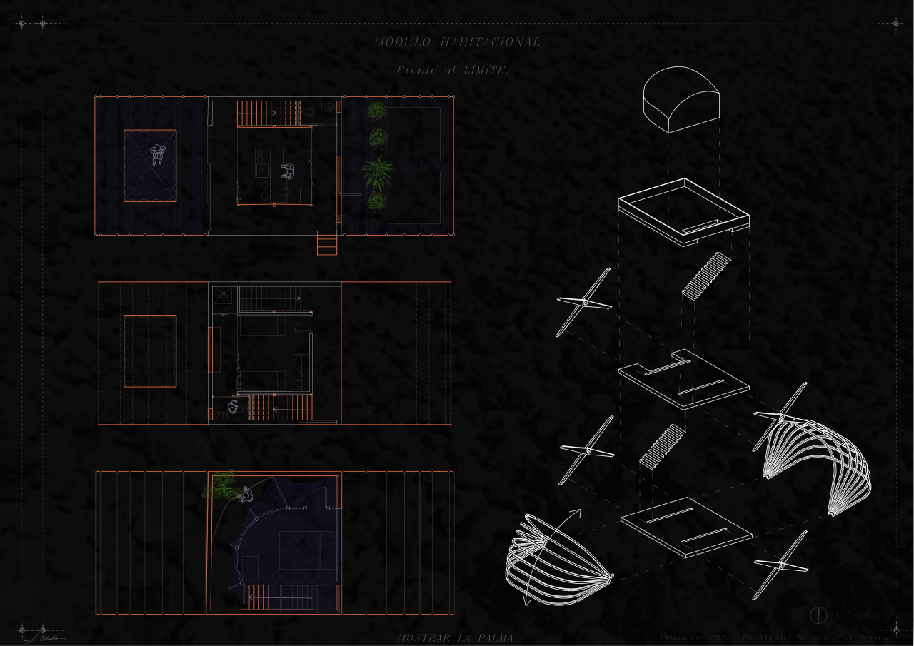 The limit of the lava is reconquered with a longitudinal action of the housing modules, these are defined in different phases.