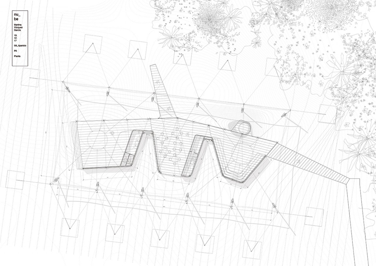 This mesh is changing all the time because the weight of people, and it compresses more or less the lower part, finding here the relation between the two parts of the project.