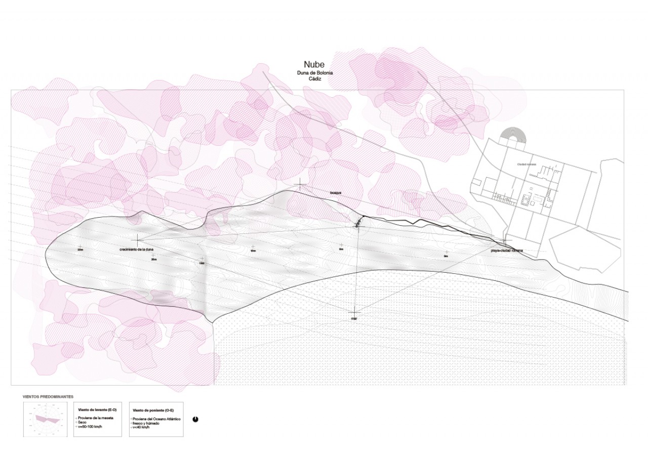 The lower part is linked to the place, its weather conditions and the incredible different views: the sea,the dune,the trees that hug the dune and the roman city which is in ruins.