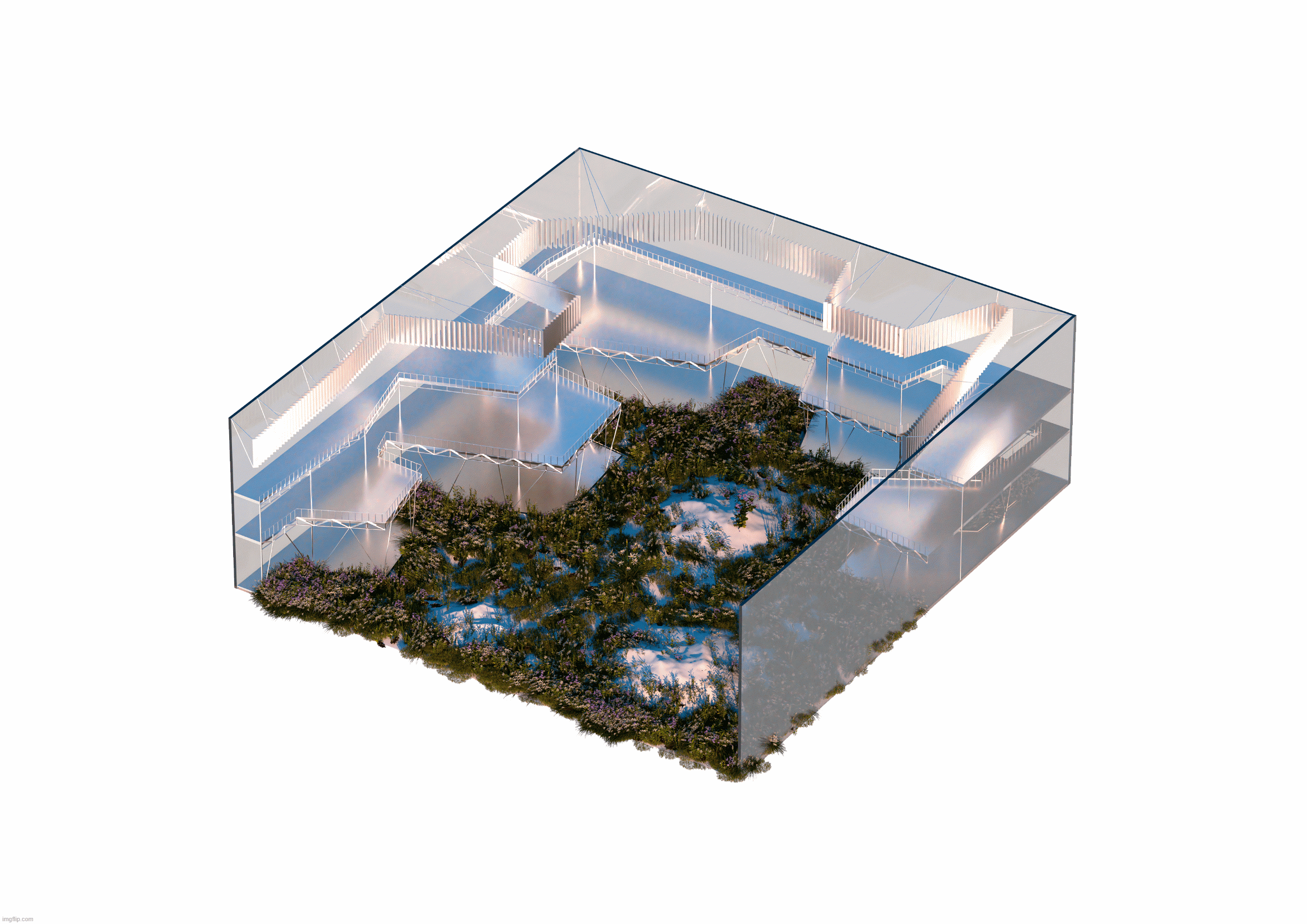 The result is an organic garden, simple and free of rationalist and orthogonal geometries. A complex ecosystem where multiple species coexist. Moreover, time is also present in this project since much of the interest lies in its evolution over time. It is a dynamic image since the plant species in this new garden have different colours with the passing of the seasons.