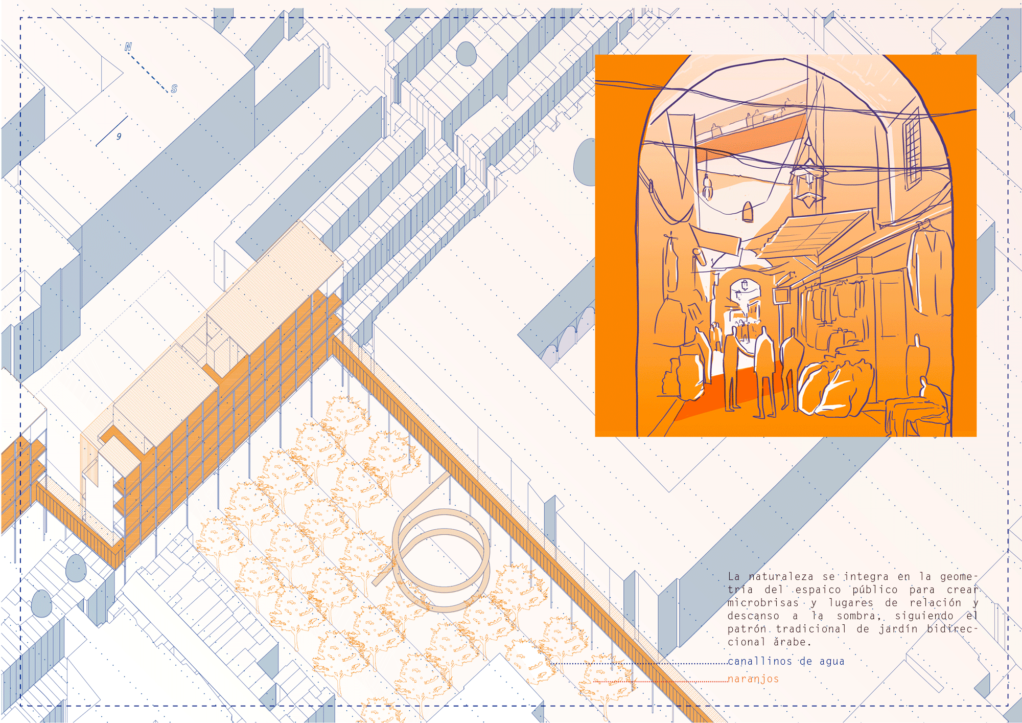 The project aims to emphasize the importance of the street as the structuring element of the city, like the skeleton of a living being. Re-inhabiting Aleppo implies bringing back to life the spaces where everyday actions take place.