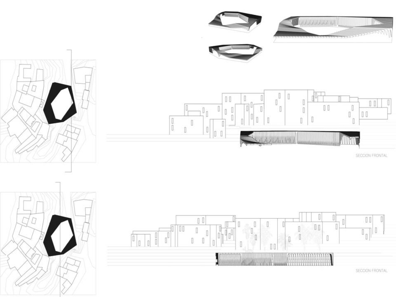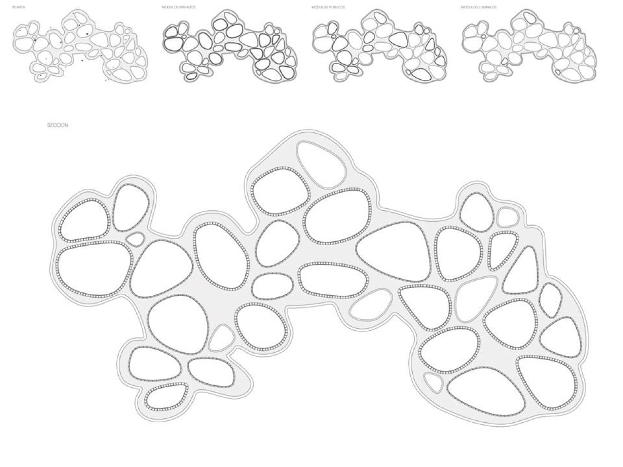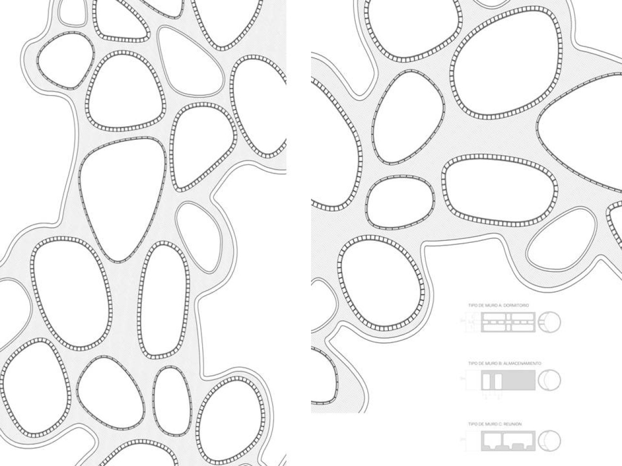 Residual spaces are a consequence of any project: spaces created from the surplus of a main object. This project considers the habitable capacity of these spaces, in a critical approach that tries to distinguish the basis of the habitability of the accessory. Taking as a starting point the experimentation of the textile formwork and the capacity to generate conglomerates with solidification properties from the desert sand, the understanding of the project is proposed as a single object able to solve in the unit of the constructive method the different dimensions of a space in which private and public life coexist.