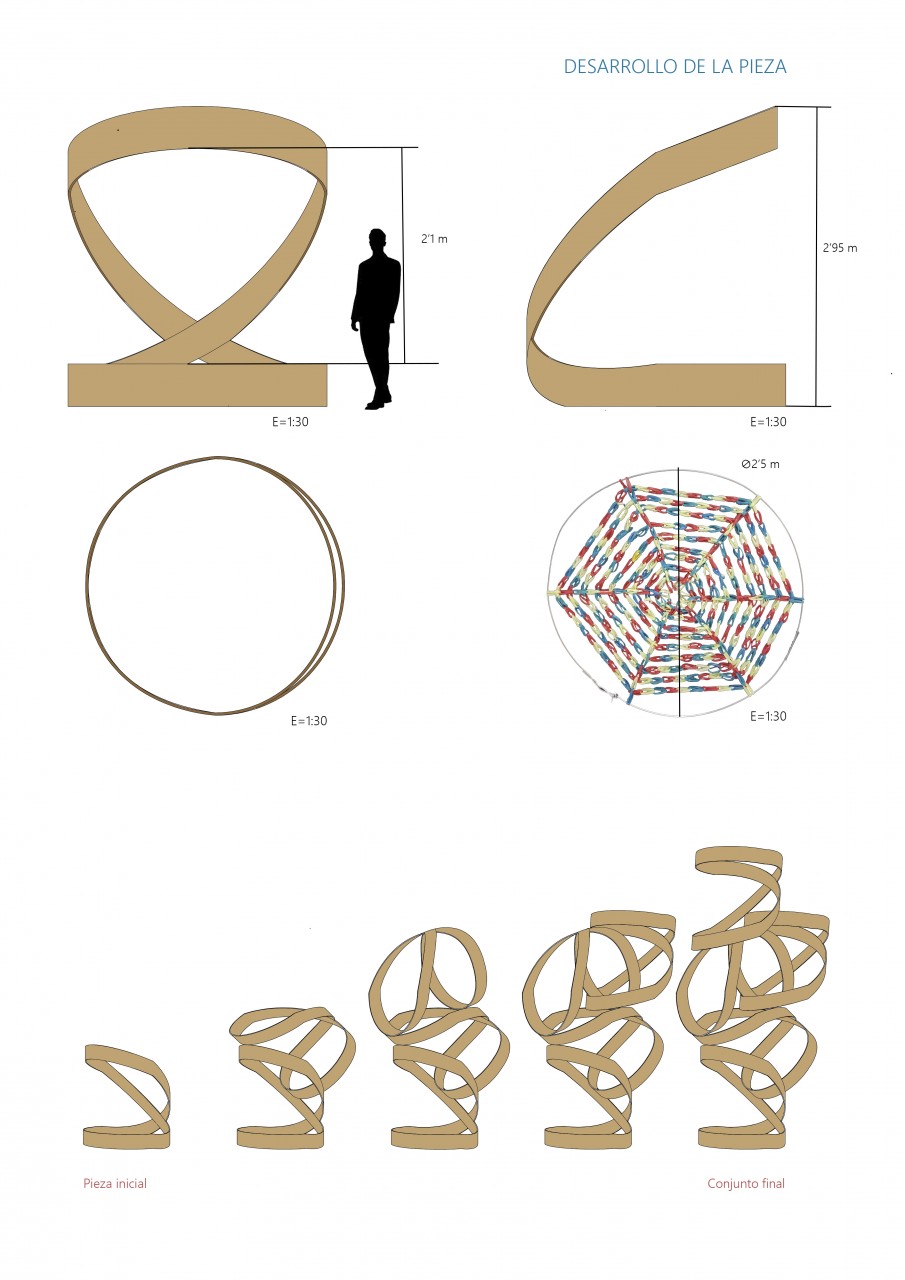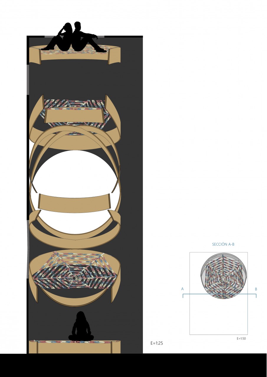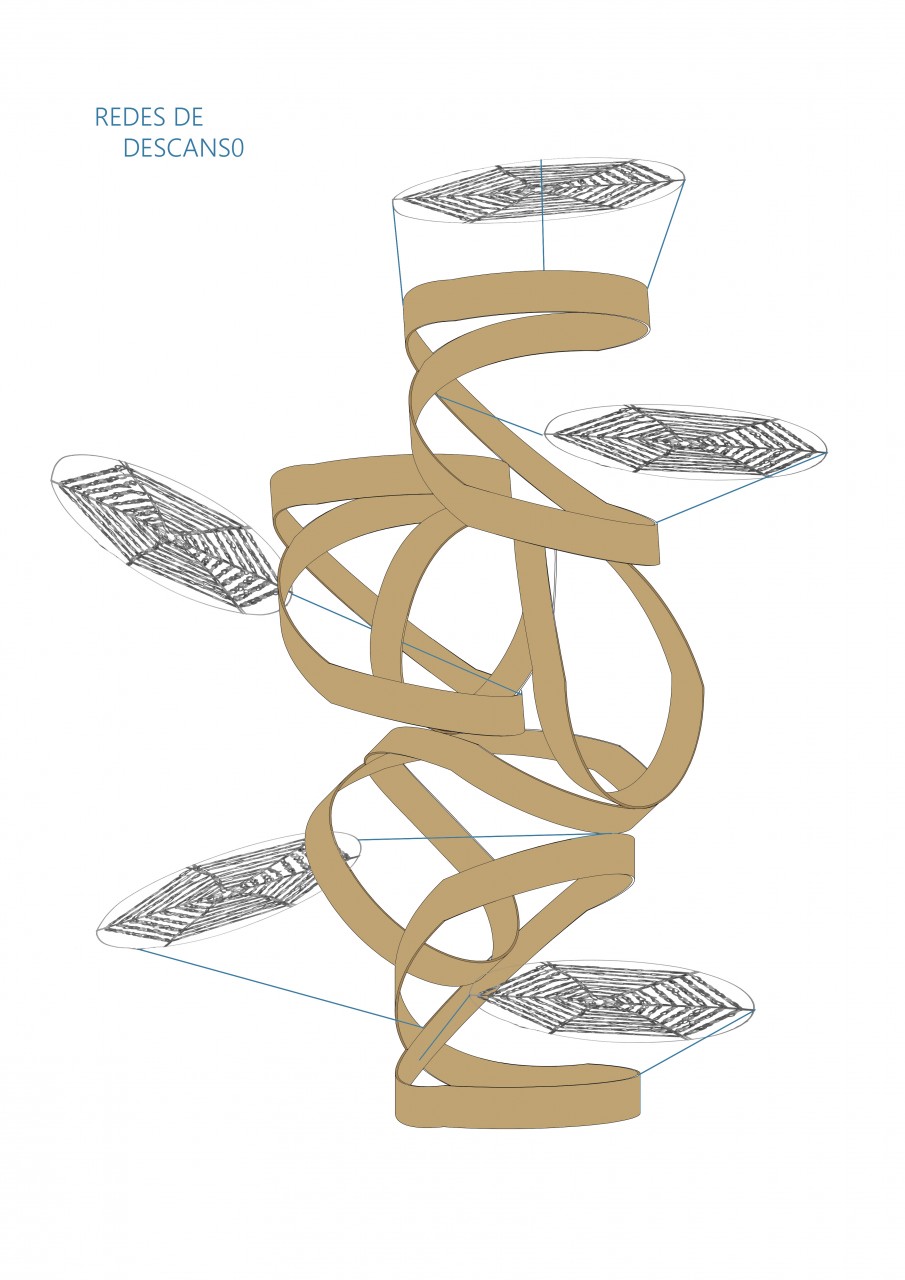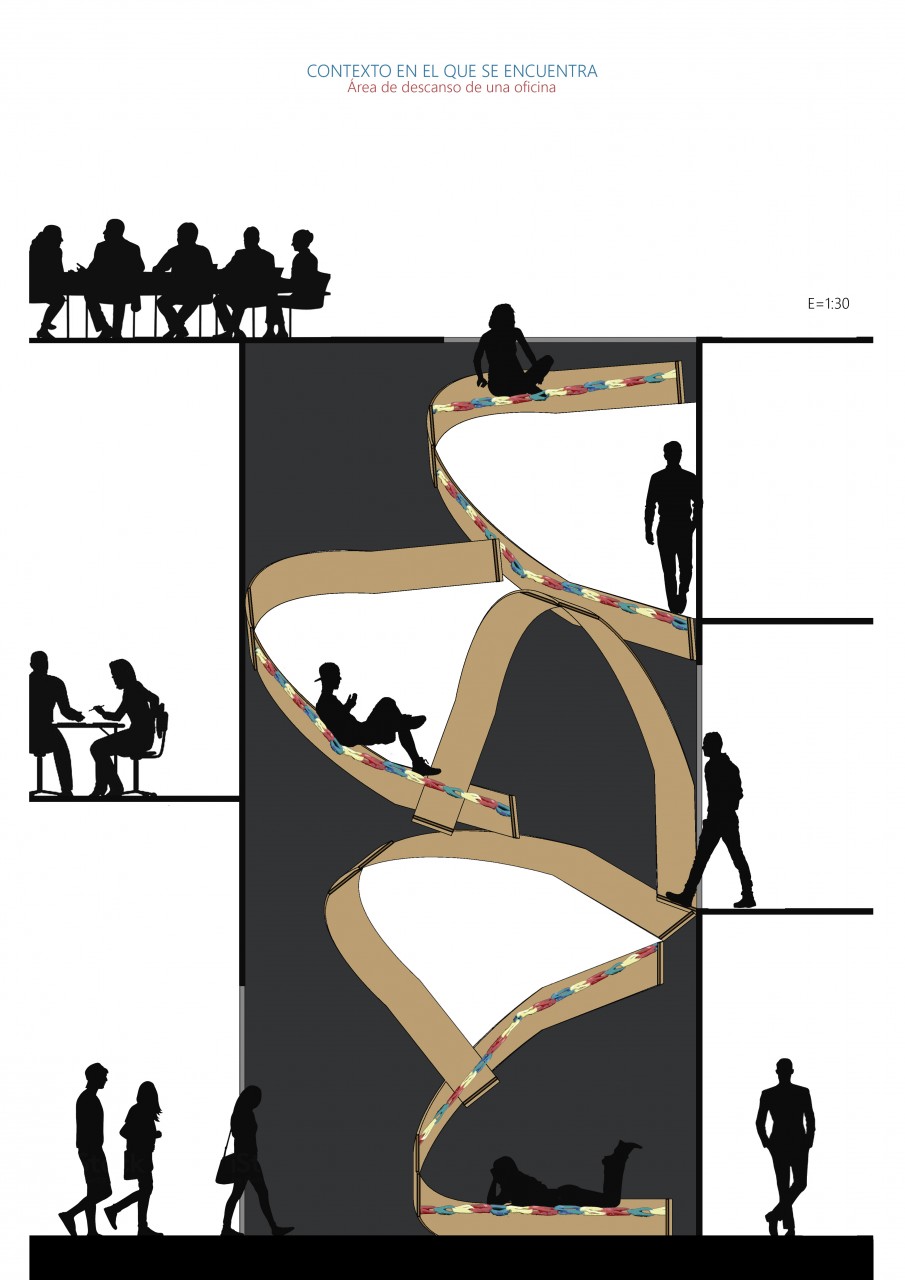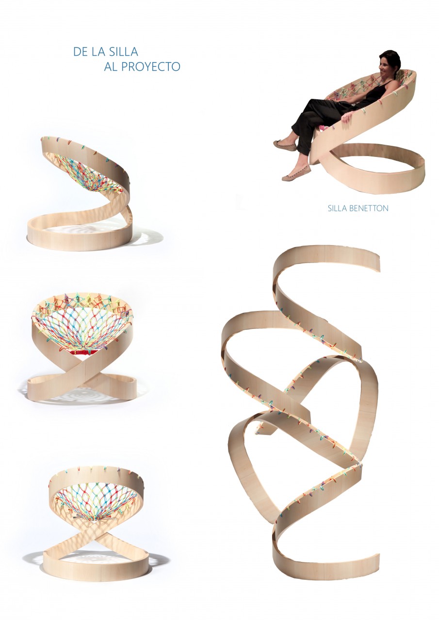 This project lies in creating a space from a chair. My election was the "Benetton chair" which is caracterized by the continuity of the estructure, its curved shape and the colorful net that conforms the seat.
