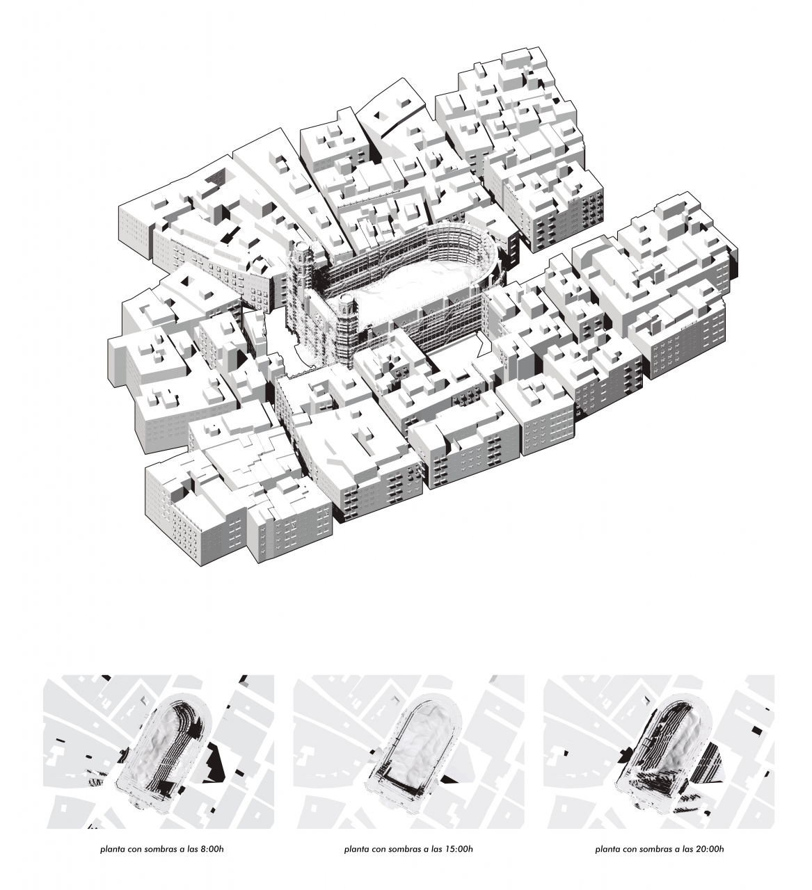 With the permanence of the massive elements, its stained glass windows and the continuity of the shoring system as a new supporting structure, a plaza emerges. Then, Santa María de las Arenas is reborn, which bears the name of its predecessor, the Romanesque church that disappeared in the 14th century, and forms a new public space in Born neighborhood, trying to recover its memory. A tunnel between the present and the past of the city. A desire to return its etymology to the plaza.