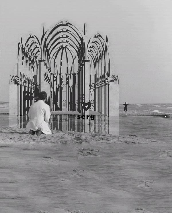 Meanwhile, structural and cult elements are moving directly to the beach of Barceloneta. The first ones consist of pilasters, pillars, capitals, arches and buttresses, and the seconds ones of candles, altar, Santa María Virgin and Christ.