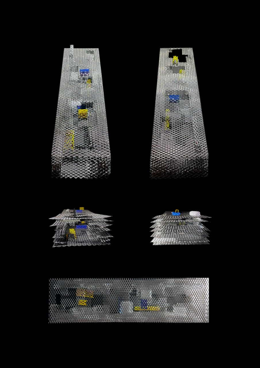 The first project consists of a temporary shelter for archaeologists. It is constituted by the overlapping of planes with different shapes that generate the different spaces. The metal rod system used gives it great versatility, being able to create different distributions and being removable to build it in different places.