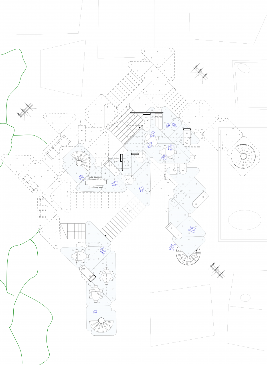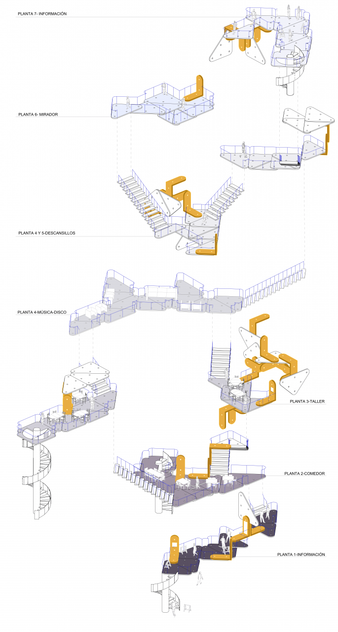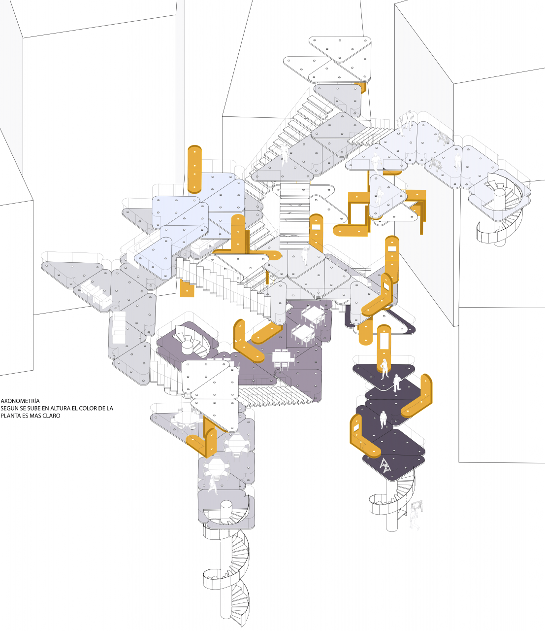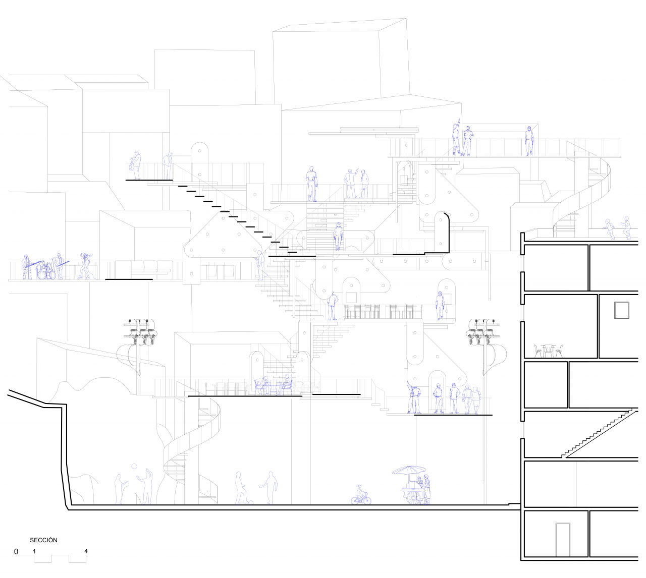 The purpose of this project is to create an open structure whose circulation is continuous and its insertion into the favela is as quick as possible in which the inhabitants of the favela take ownership of it and can make different uses of it.