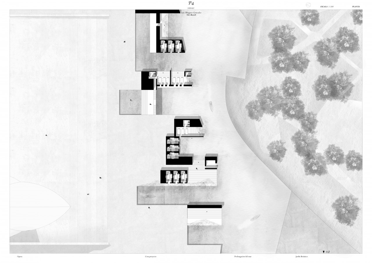 The aim is to respond to three differentiated variables: the sea that surrounds the Utzon basing, the Opera with its basement and the botanical garden that joins in an inescindible way with the project.