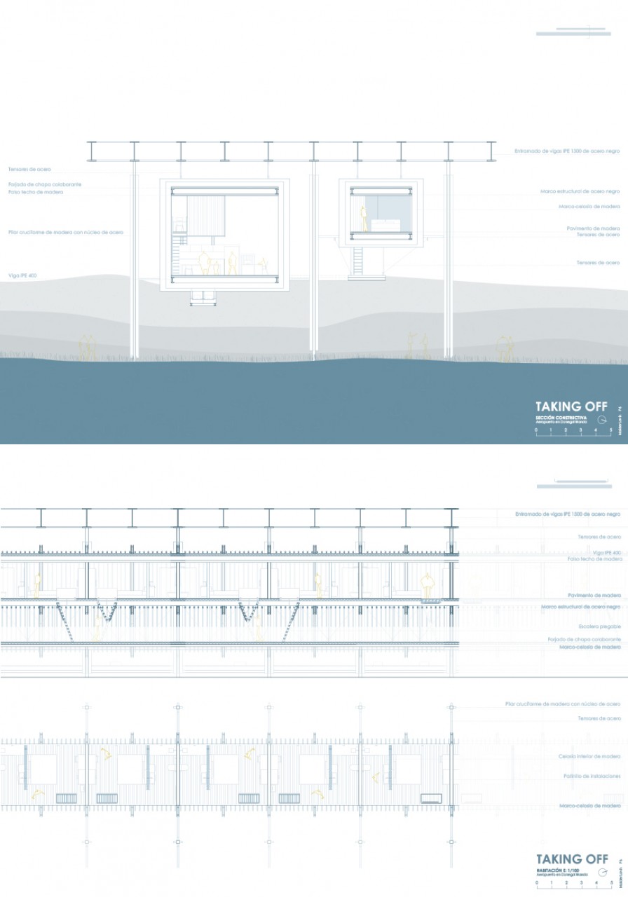 In this case, the hotel and terminal were unified in a single exercise by taking and adapting the modular structure previously proposed for the residence. Due to this decision, we will directly explain the final project.