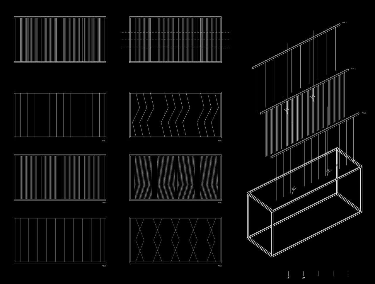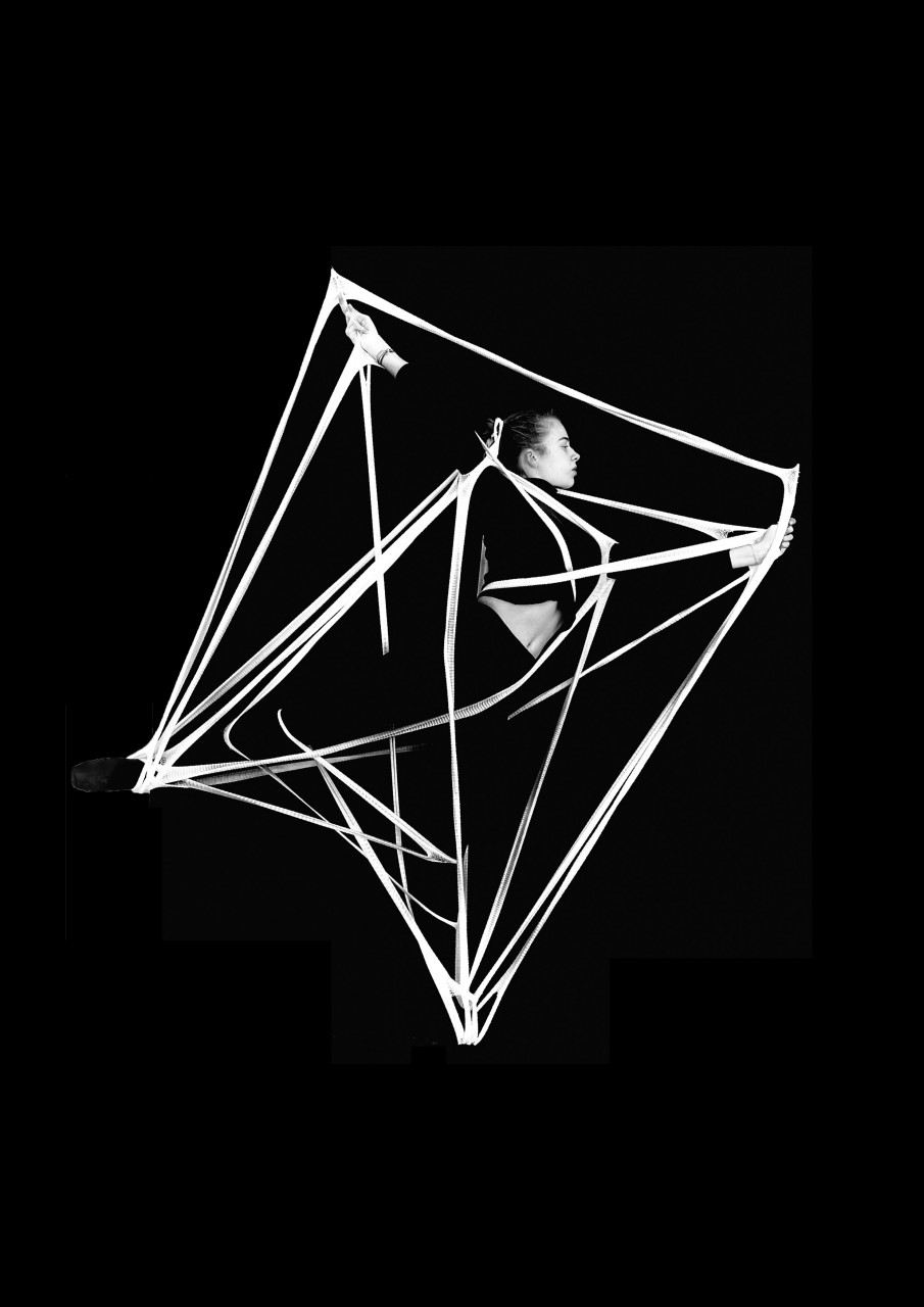 I based my work on the concept of tensegrity and tried to create space and variations by studying the elasticity of the materials I chose and combining it with geometric patterns the whole time so that nothing was random.
