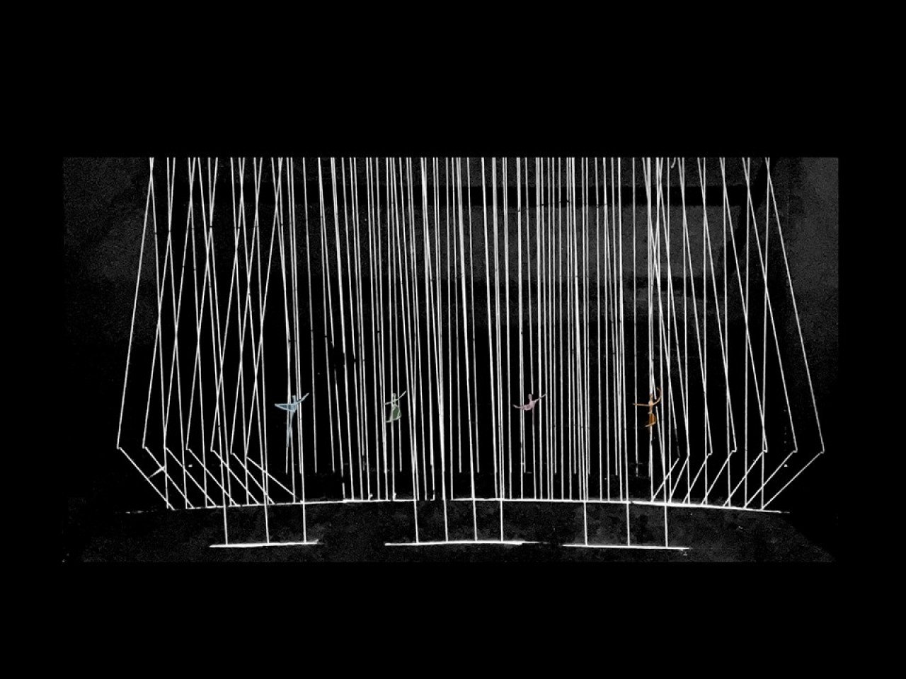 We worked first with our bodies and then with the scenic space so that we could first get to know the scale of a person and then take it to a bigger situation: the stage.