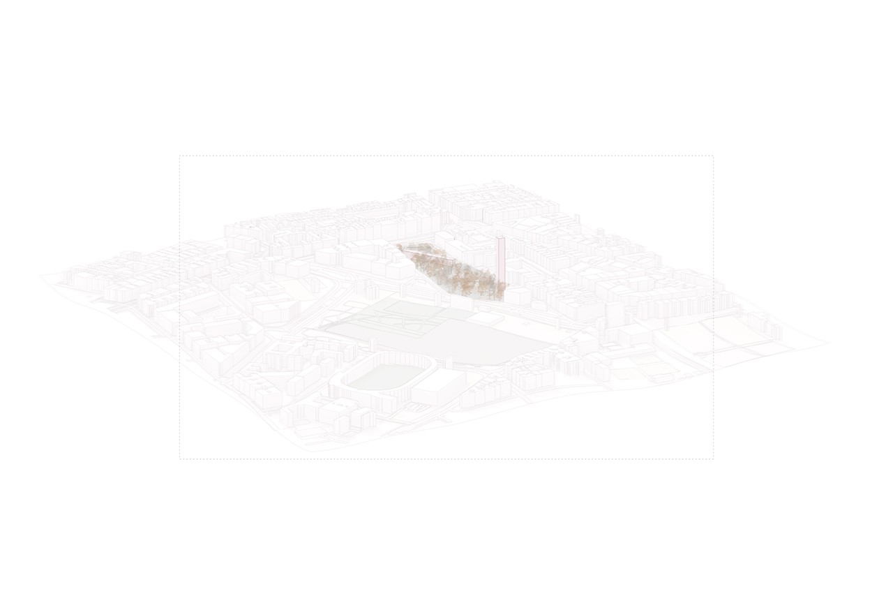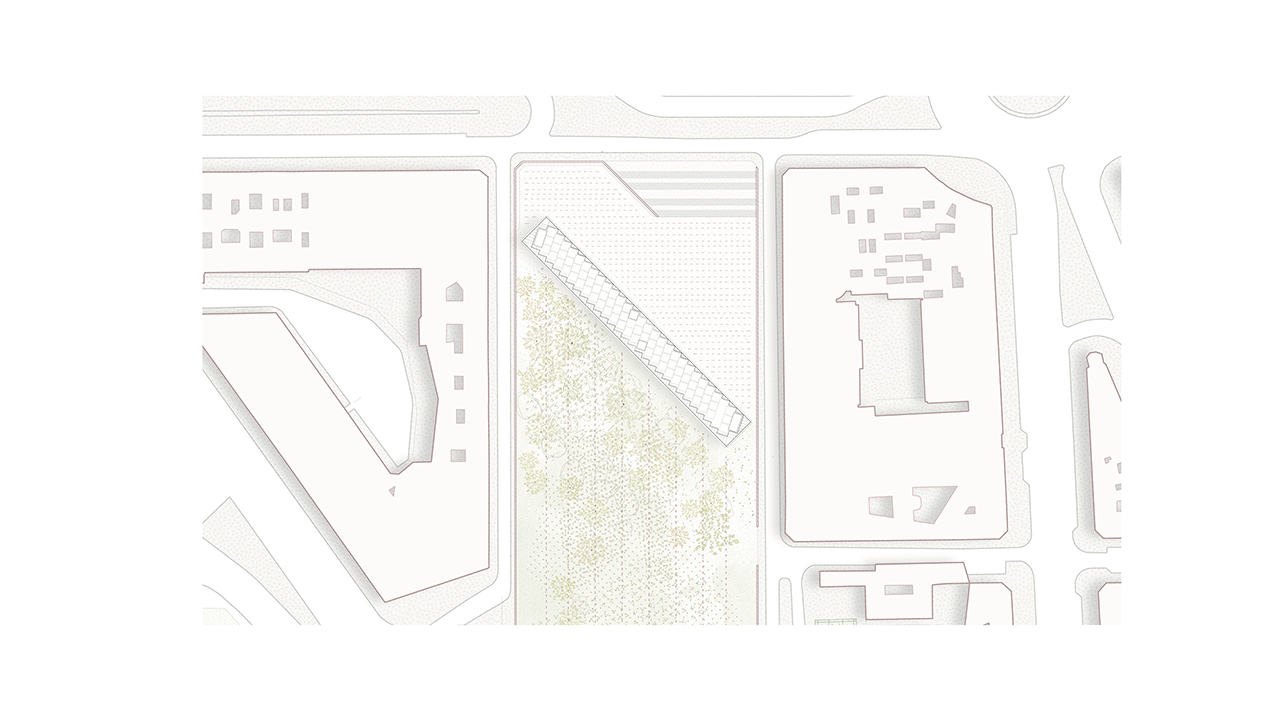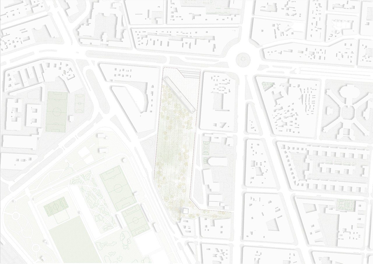 We are in Madrid, in the old Cuatro Caminos depot. A peculiar place in the heart of the capital. On this uninhabited plot, a new space of interest for the city and its neighbors will be developed. Thus, creating a new idea of a park in which two residential buildings of 100 meters in length and height respectively will stand out.