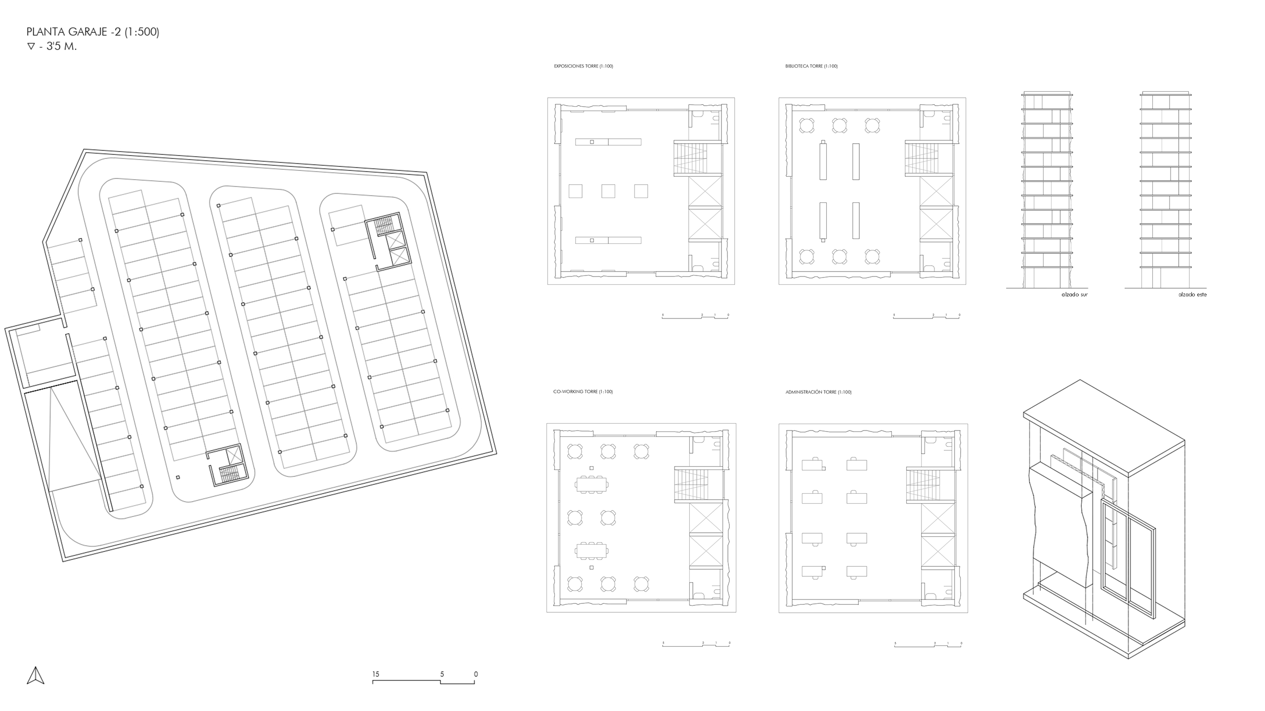 As a counterpart to the horizontality of the project rises a tall tower with the cultural and administrative program.
