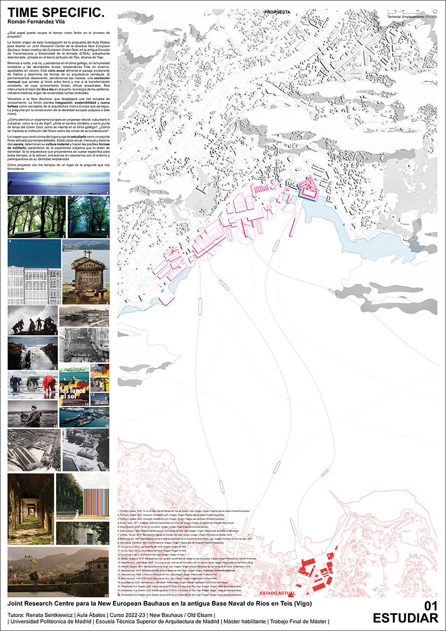 The fiction at the origin of this research is the proposal by Aula Ábalos to design a Joint Research Center from the New European Bauhaus directive, the creative wing of the European Green Deal, at the former site of Spanish Navy's School of Transmissions and Electricity (ETEA), a group of buildings currently abandoned and located in the harbour district of Teis, on the outskirts of Vigo (Galicia, Spain).