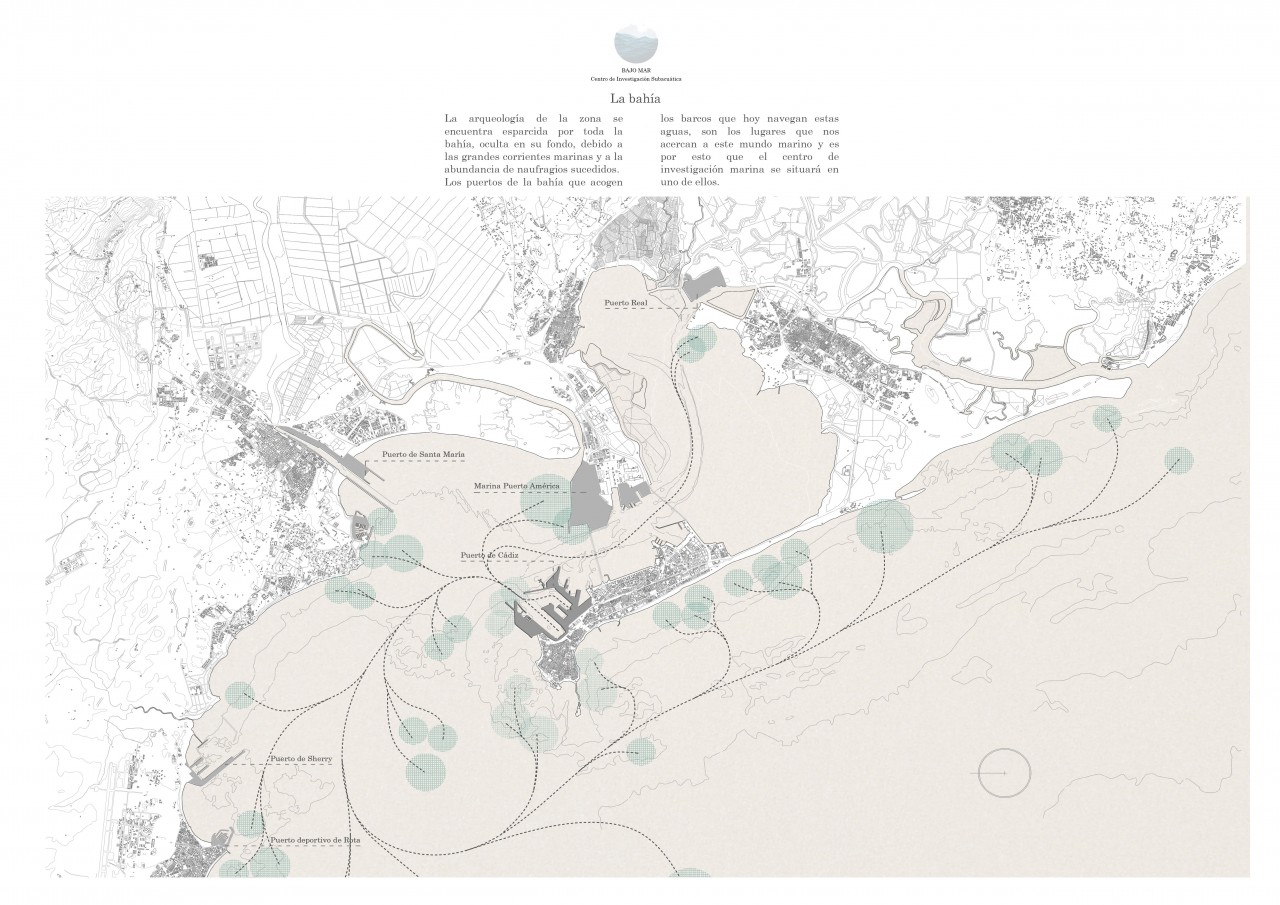 The history of the Bay of Cádiz is marked by its military and commercial situation. The streets of the city show us the remains of the past; however, much of this history is still unknown because is hide "Under the Sea", where there are countless archaeological remainss. The project is located in Cadiz´s harbour, specifically in a useless dry dock. The project try to achive 3 main goals: