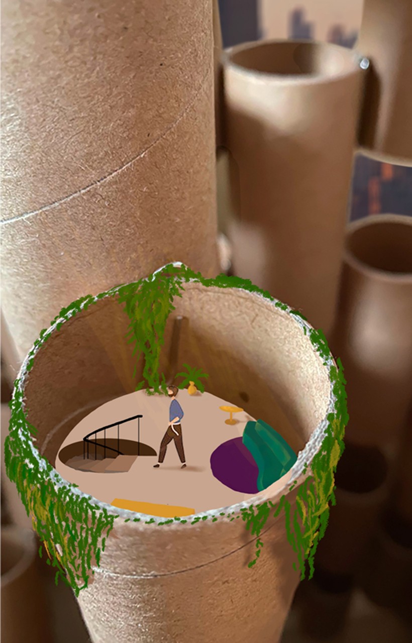 Modern cities are full of noise and din, therefoer I present a way out from the stir, small capsules in which you can observe the city wiyhout taking part in the scene.