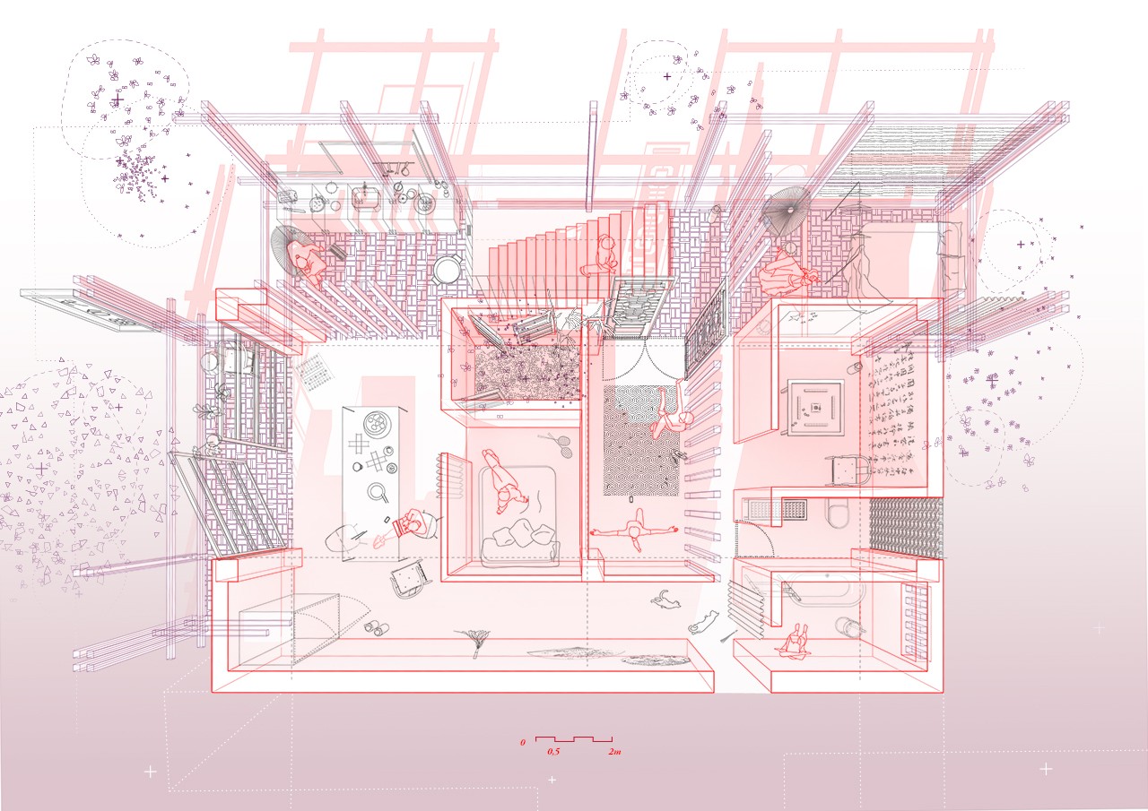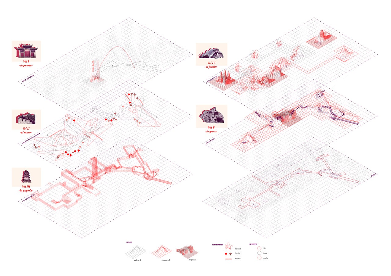 An imagined construction of a neighborhood that is actually three. Three ways to understand the monument: connection, aesthetics and memory. Usera as the speculation of the Chinese transnational phenomenon; of a latent place and time -possible and impossible- to be incorporate into the monumental Madrid.