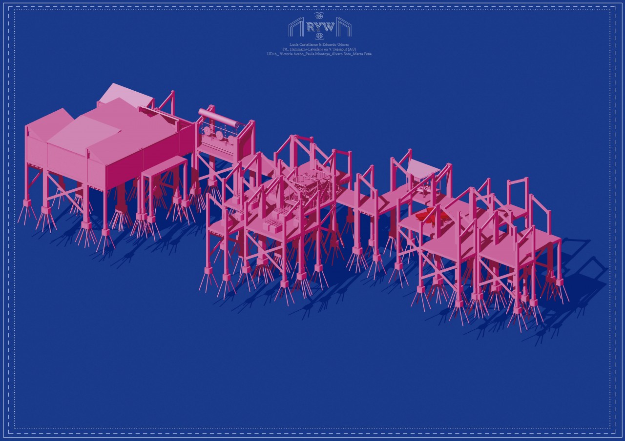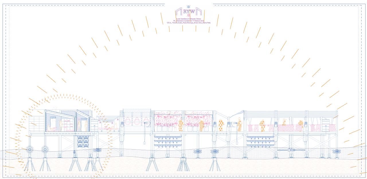Ryw is on a river and is composed of a single piece, which is repeated many times. The contextual parameters and the tight budget were determinant to make most decisions. The project talks constantly about the relation between above and below, how the river provides what the spaces need and vice versa.